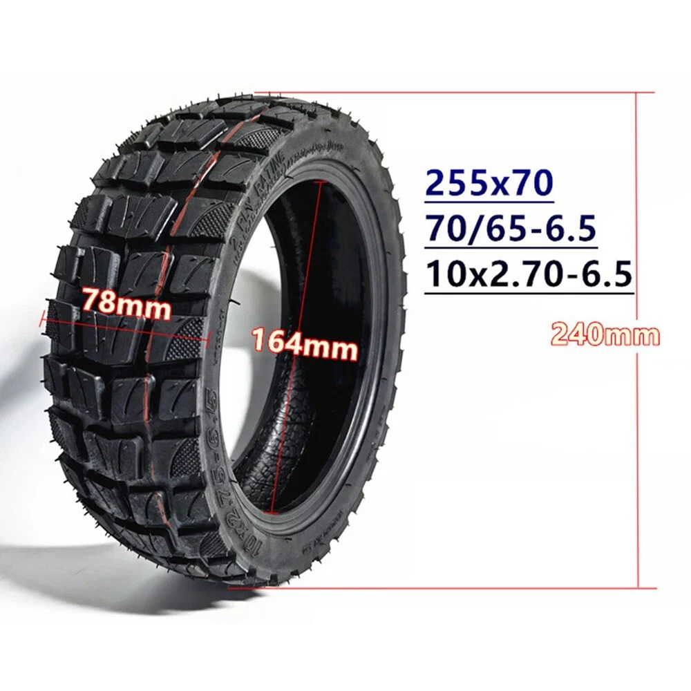 Vacuum Tire 70/65-6.5 For Electric Scooter Replacement Rubber Wearproof DESCRIPTION Warn ing: It is illegal to ride electric scooters on public roads, pavements, or cycle paths. They are intended only for use on private land with the owner's permission Description: * brand new and high quality *Made of rubber material, and Wearproof *Not easy to deform, can be use for long time *10x2.75-6.5 tubeless off-road tire, excellent replacement applications that use same tire size Specification: *Material: Rubber *Color: Black *Weight: About 700g *Size:As Pictures Show *Model: 10x2.75-6.5,70/65-6.5,255*70 Package Includes: 1 x Tire Note: 1. The real color of the item may be slightly different from the pictures shown on website caused by many factors such as brightness of your monitor and light brightness. 2. Please allow slight manual measurement deviation for the data. POLICES Shipping Payment WARRANTY We only ship to confirmed ebay Order addresses. Please comfirm that your Order address is in line with your shipping address. Please kindly note that the c ombined shipping is not provided because the shipping fee is calculated by weight. Also, the each additional item means exactly the the same color and size. It takes about 7 -15 working days to US; about 10-30 working days to other countries. Transit time may be a little delayed because of the bad weather and customs inspection . If you do not receive your item within 30 working days since payment finished, please contact us immediately for further assistance. Payment must be completed within 5 days. If you have any problems about payment, please contact us via ebay message. We strive for 100% customer satisfaction! Positive Feedback is very important to us. If you have any questions, p lease feel free to contact us via "Ask seller a question" . We will reply your email within 24 working hours.