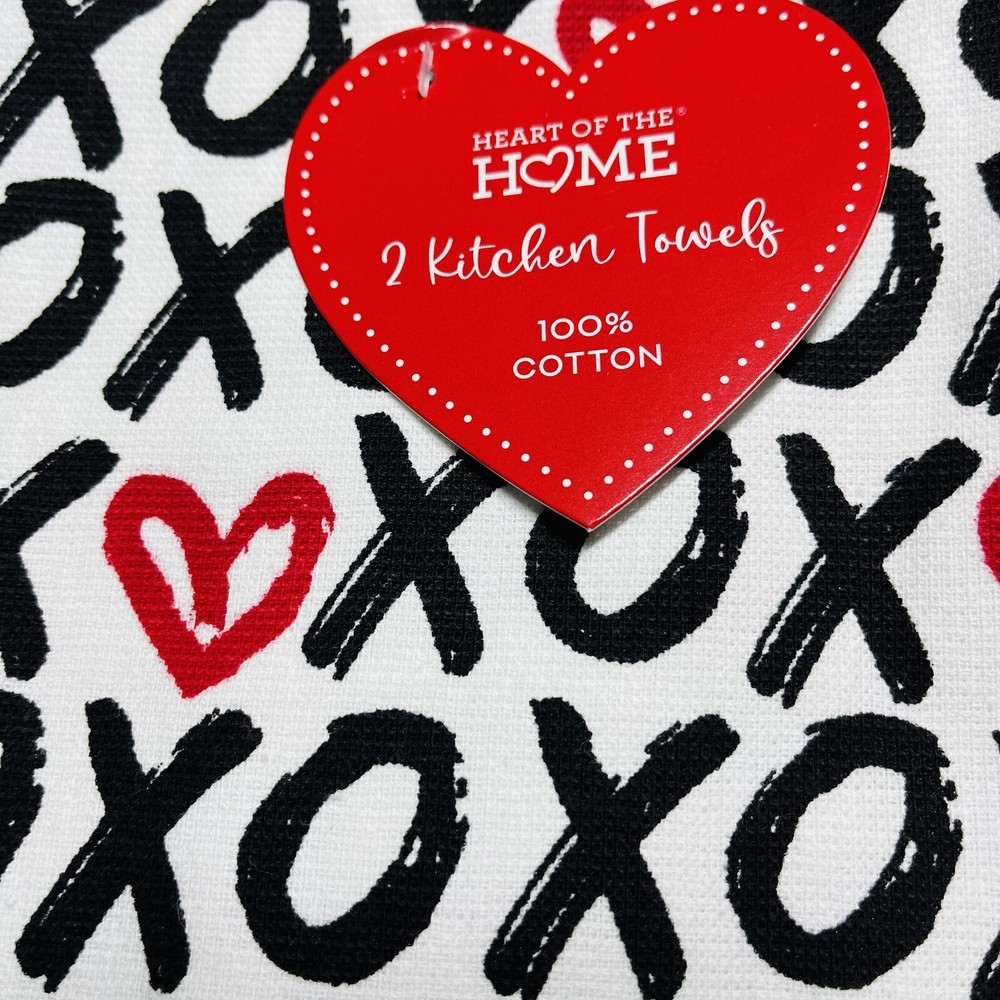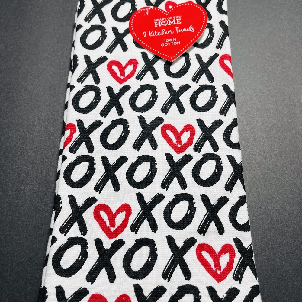 Valentine’s Day 2 Pack Kitchen Hand Towels XOXO Hearts Love Hugs Multicolor NEW