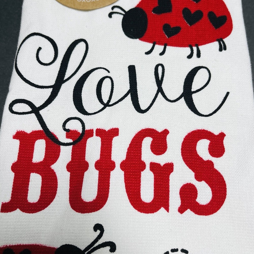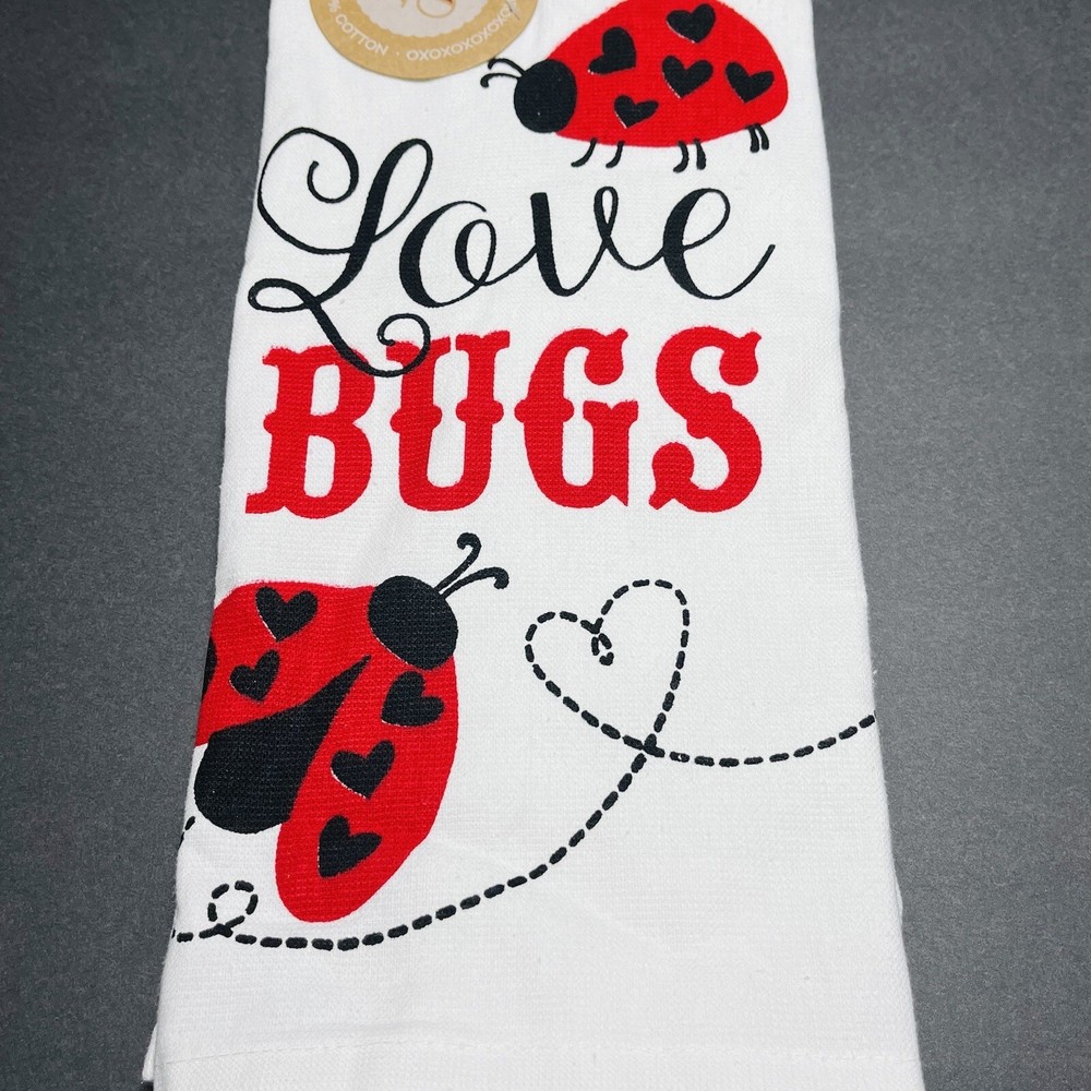 Valentine’s Day 2 Pack Hand Towels Anniversary Love Bugs XOXO Red Decor NEW