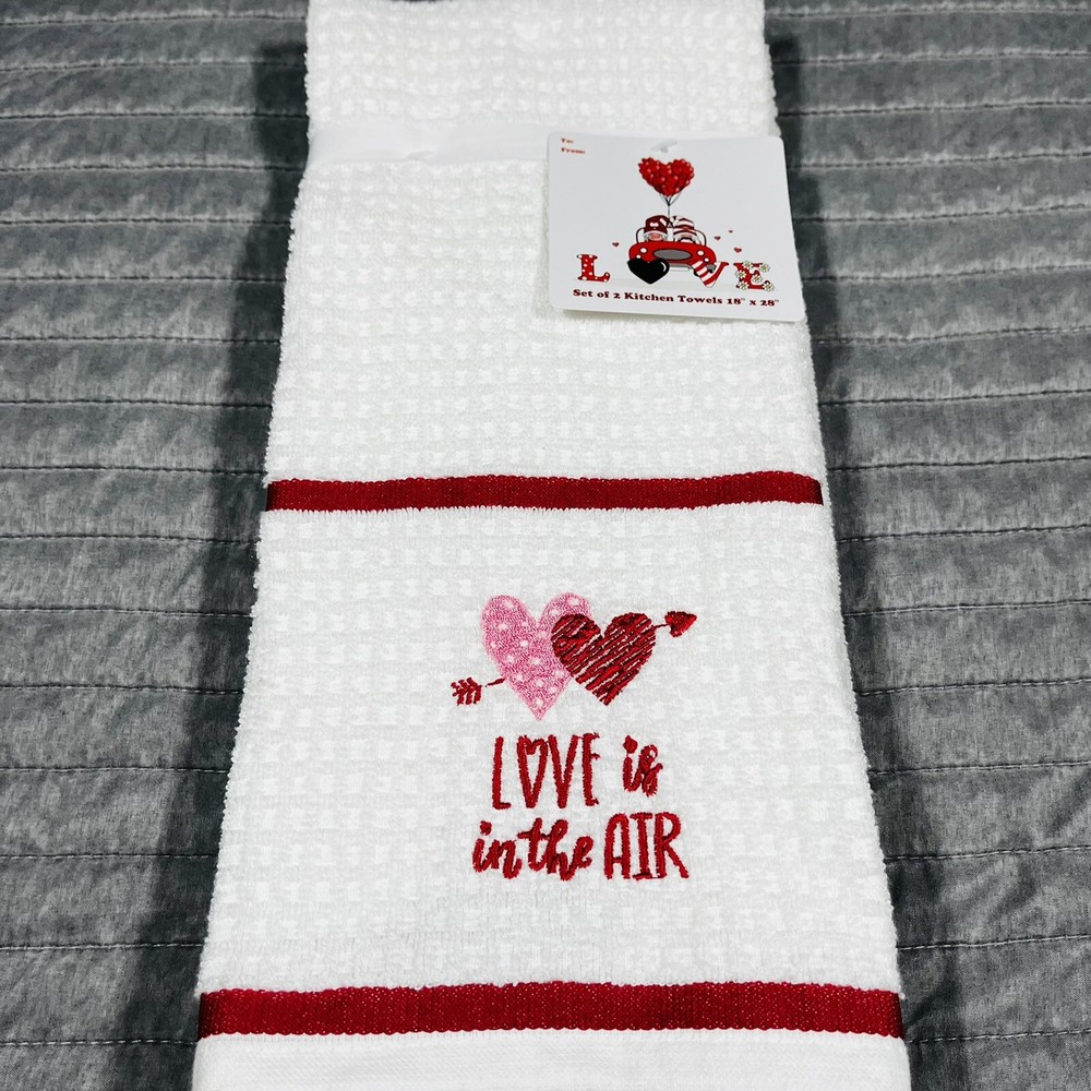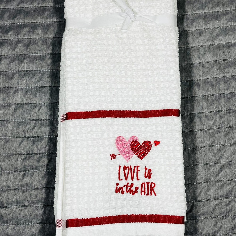 Valentine’s Day 2 Pack Hand Towels Love Is In The Air Hearts Arrows Anniversary