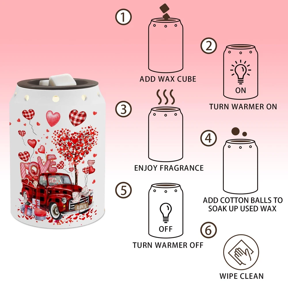 VALENTINES DAY DECOR: This valentines day wax melt warmer is a perfect valentine decorations for Home. Valentines wax warmer for Livingroom Kitchen Bathroom Home VALENTINE DECORATIONS FOR HOME: Red gnome with heart printed valentines wax warmer, is a meaningful gifts. If you are looking for relaxation gifts, cozy gifts, thank you gifts, practical gifts, do not hesitate to order our candle warmer, and perfect for valentines day gifts HOW TO EFFECT: This valentines day decorations wax warmer includes the bulb is inside, which melts the wax and has a soft glow like a cute night light EASY AND SAFE RELAXING ITEM - High quality bulbs are longer-lasting, more efficient can quickly enter the comfortable fragrance environment, and can as a night lamp, soft night light give you a relaxing environment in smell and sight. All these will help us building a valentines day romantic ambiance UNIQUE VALENTINES GIFTS- With meaningful valentines day dysign, this valentines day wax melt warmer is a great gifts for any livingroom, kitchen, bathroom, home and make charming decorative statements for any indoor