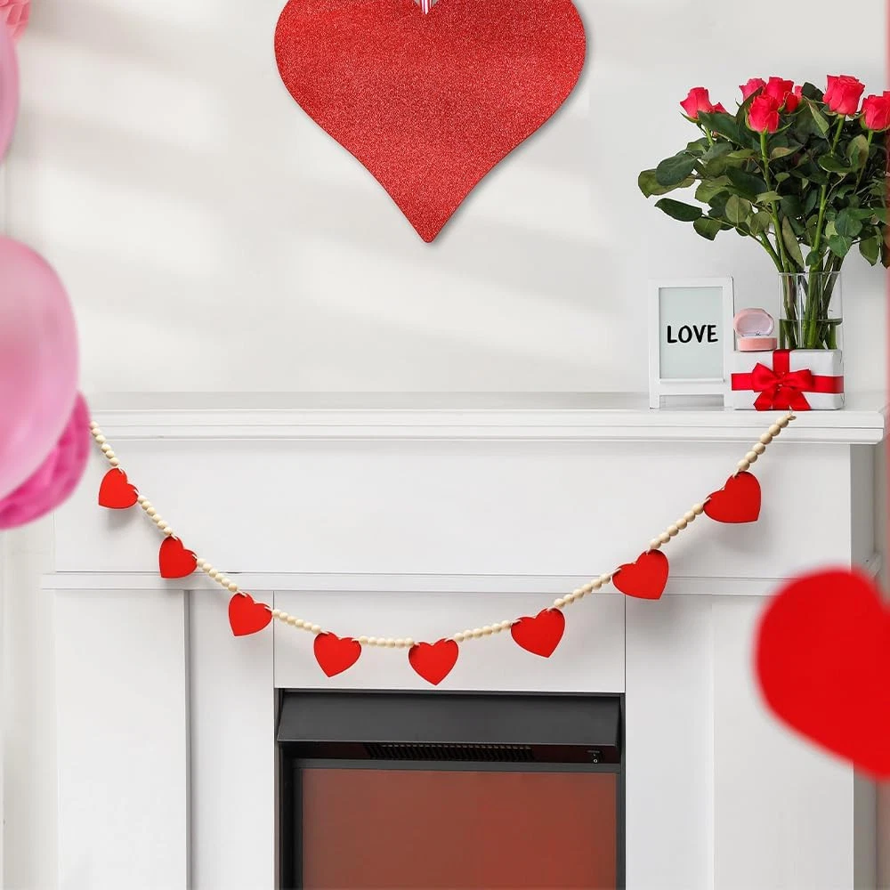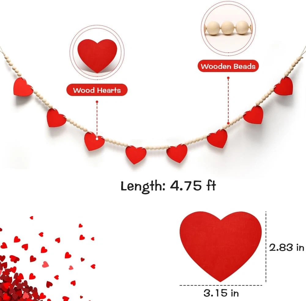 Valentines Day Decorations, Wood Red Hearts with Bead Garland for The Product Details Brand: AKEROCK Color: Red Material: Wood Item Length: 60 Inches Plant or Animal Product Type: Plant 【Garland Length】4.75 Ft 【Unique Design】It has 8 red heart-shaped wooden plaques separated by wooden beads 【Easy to Hang】 The rope rings on both sides can be hung directly, no other operations are required 【Material】 Made of wood, no smell, no fading 【Wide Application】 Suitable for Valentine's Day, New Year, wedding and birthday, wall, living room, mentle, bedroom, kitchen, office decoration