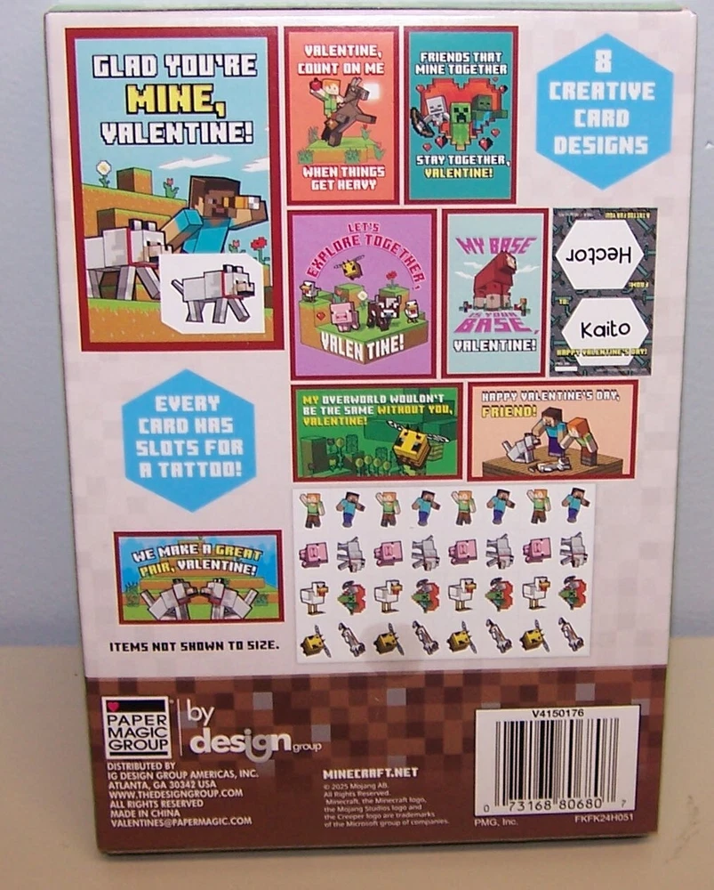 We ship the same day that payment is received New in Box / Never opened Valentines Exchange Cards Minecraft Box of 32 With Stickers 8 Different Designs Shipped in a protective box Shipped From a Smoke and pet free home Please e-mail for worldwide destinations. We ship via first class international mail for our worldwide shipments. In most countries it normally takes about 15-18 days for arrival with customs delays. We cannot be responsible for customs delays. When your item has been shipped, we will email the customs form number. Please e-mail me with any questions. Be sure to check back new items added daily. Fast Shipping Thanks for looking!!