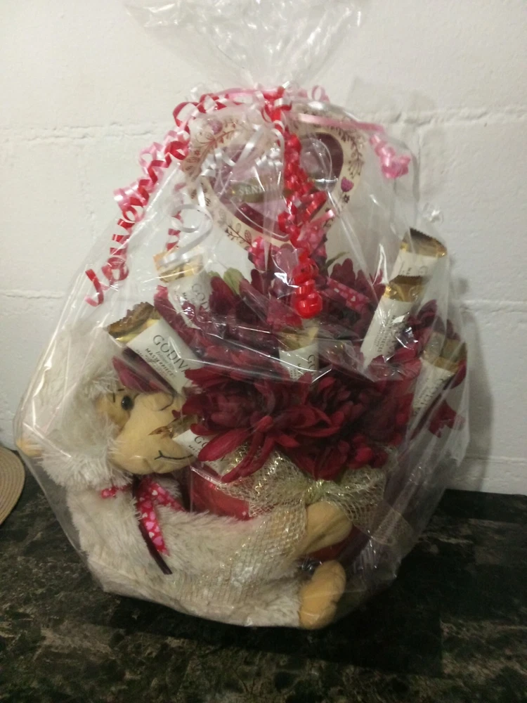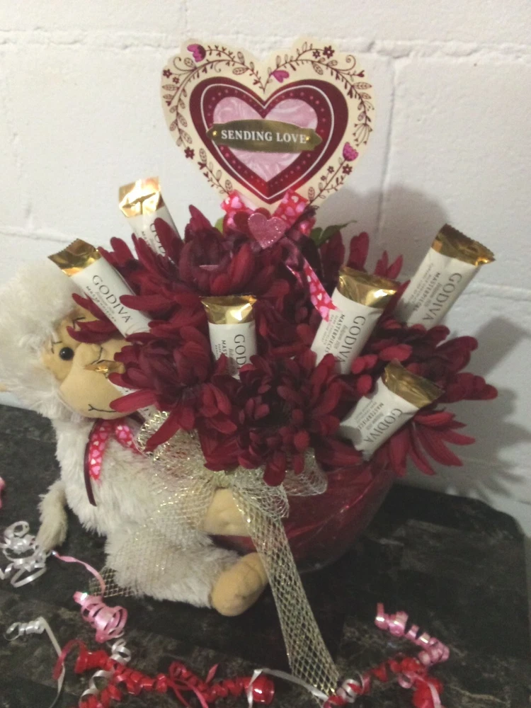 Surprise your loved one with this handmade Valentine's Day gift basket that is filled with love and all things sweet. This multipurpose gift set features an adorable monkey character theme with heart-shaped chocolates, beautiful flowers, and delicious Godiva truffles. The colorful and vibrant multicolor design adds a touch of uniqueness, making it a perfect gift for any occasion. You can even personalize it with your own special message to make it more meaningful. This all-in-one gift basket is professionally crafted and made in the United States, making it a perfect choice for anyone who appreciates quality.