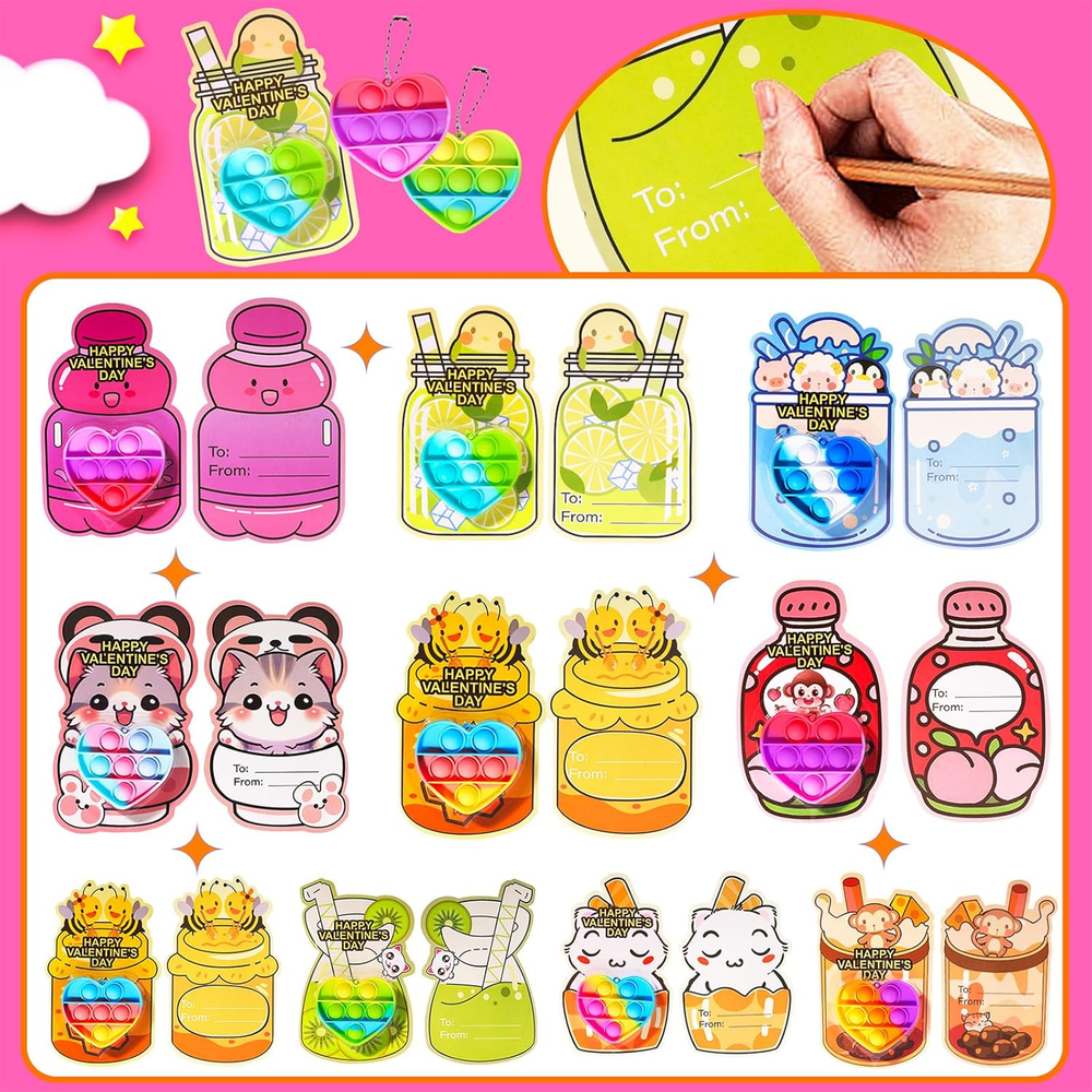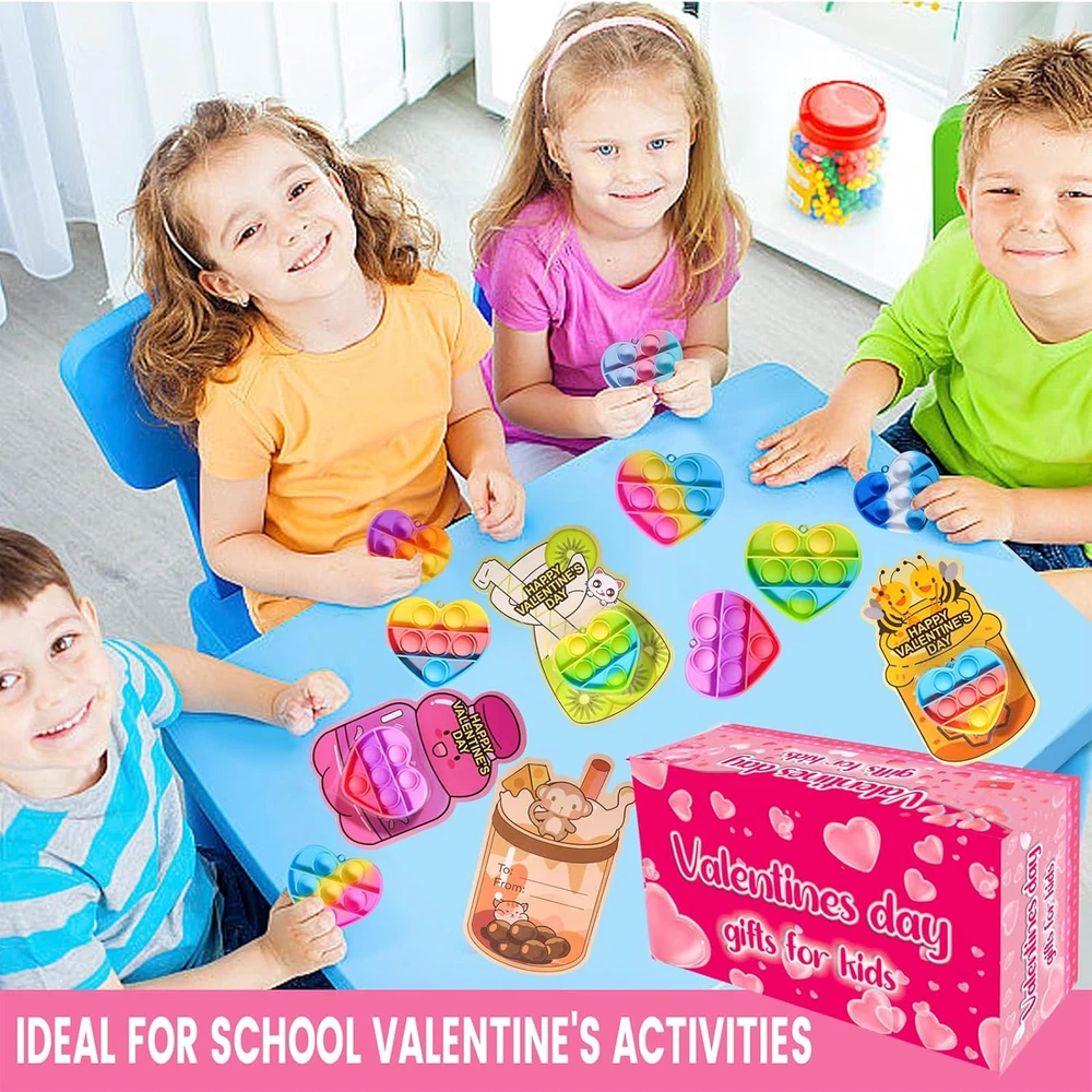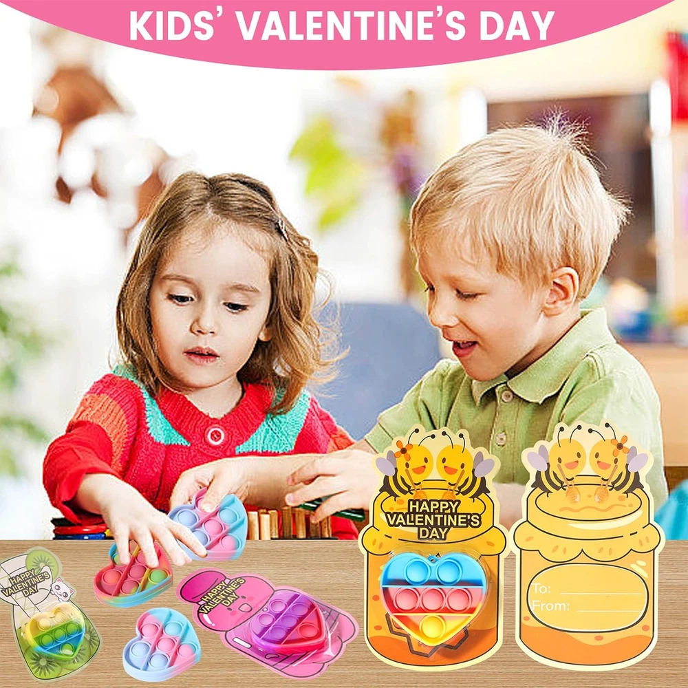 These Valentine’s Day gifts are perfect for kids! The set includes 40 adorable pop-it keychains and matching cards—each color-coordinated for extra fun. Made with safe, non-toxic materials and CPC-certified, parents can relax while kids enjoy the pre-filled heart pop-its. A fantastic, hassle-free way to spread love in the classroom!