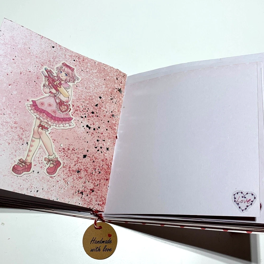 Handmade Junk Journal Pages were made to journal on or within a tag or paper within a pocket/envelope One of a kind Handmade by my 78 year old mother Design: Anime / Manga Ideas for using a Junk Journal: An Everyday Planner Book Writing your dreams and goals Gratitude Journal Bible Study Daily Diary Creative Ideas Journal Poetry Art Journal Recipes Family Memories and Photos Preserve Journal Homemaking Journal Health and Fitness Journaling Travel Journal Party Planning Journal (including the holidays like Christmas) Self Improvement Journal - ideas to better your life