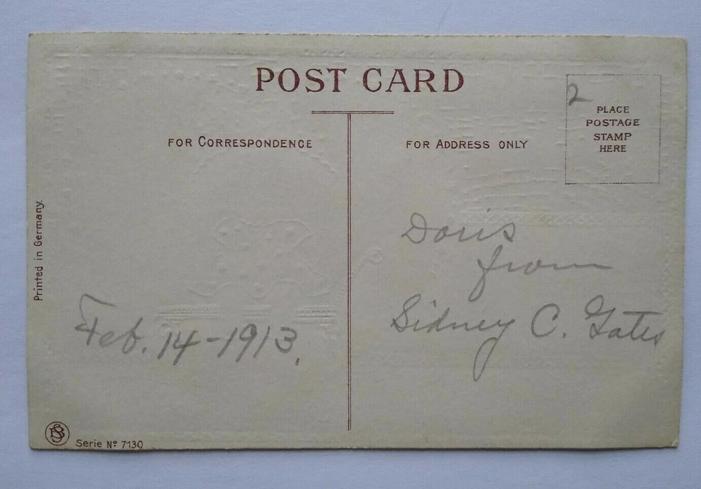 Valentines Day Postcard Girl Seated Inside Heart Barton & Spooner Series 7130 Vintage gel coat finish Valentine postcard. Printed in Germany, company logo, and series 7130 on back. Clean card with light surface wear and corner/edge wear. Writing on back but never mailed. See photos. Stock #val5. Additional Halloween, Santa, Christmas, holiday postcards are in our eBay store. SHIPPING Bundle and save by using cart and making single payment. International buyers are responsible for any import fees/taxes. ABOUT US Seller of vintage collectibles, retro gifts, advertising, artwork, vinyl records, pinball and arcade game flyers and parts, Mad magazines, antique Halloween and holiday postcards, Christmas items, super hero memorabilia, horror themed art, fun stuff. MORE POSTCARDS AND EPHEMERA IN OUR STORE.