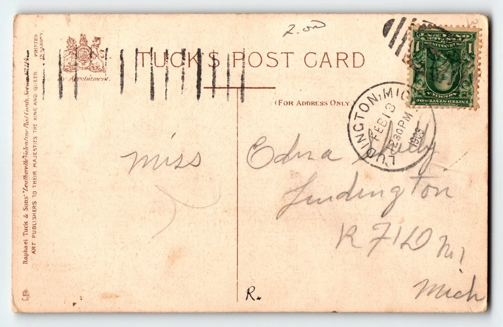Posted with 1908 cancel. Antique original vintage embossed post card. Has spotting, corner dings, and age wear. Stock #val92. Additional postcards are in our store. All post cards are old originals and may or may not have writing on back. Bundle and save by using cart and making single payment. Vintage Postcards Make Great Holiday Gifts!