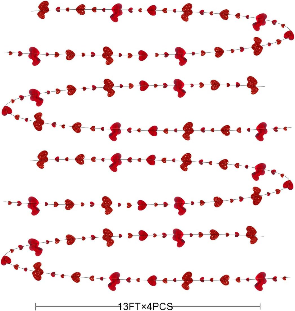 ❤Package Contains- 4 packs of hanging red heart garland valentines day decorations kit ,each string is 13 feet/ 4 meters. ❤Environmental Material-Our red heart valentine romantic decorations garland kit are made of two materials paper alternately.Double sided metallic paper and glitter paper,high quality with neat cut,strong,won't come unstitched or broken easily.durable and reusable. ❤Unique Design-Double love heart design with small hearts and mini hearts, and the different sizes metal surface and glitter surface are arranged alternately, making your party decoration more shiny and gorgeous,Imagine the look as they walk into your party to see the beautiful romantic decorations that you so deliberately decided upon. ❤Using Occasion-Perfect for decorating any parties.such as valentines day,red party,new year eve,wedding,christmas,birthday,prom,bachelorette,engagement,bridal shower,hen party, graduation ceremony,celebration,anniversary party decoration or hung them with tape from the ceiling! ❤Product Warranty and Customer Service-We provide 48-day money-back and 24-month warranty. So feel free to contact us if you have any question. Product Description Our Red Double Heart Valentines Day Decor Hanging String Garland Kit Includes: 4 Packs of red heart double side glitter & metallic heart garland Dimension: Each string of the red heart garland is 13 feet/ 4 meters.Total length is 52 feet/ 16 meters. 已申请版权保护,谨防抄袭,否则后果自负! MULTIPLE OCCASION: Hen party decorations Red party decorations Heart party decorations Wedding party decorations Valentines day decorations New years party decorations MULTIPLE OCCASION: Anniversary party decorations Engagement party decorations Bachelorette party decorations Baby shower party decorations Mother's day party decorations Bridal shower party decorations WARM-TIP: Unroll & unwrap garlands carefully. Due to delicate nature of thread, may tangle. There may be dimension errors to some degree due to manual measurement. There may be some slight differences between the color tone of the pictures and that of the actual items due to lighting effects, monitor's brightness and contrast settings, etc.