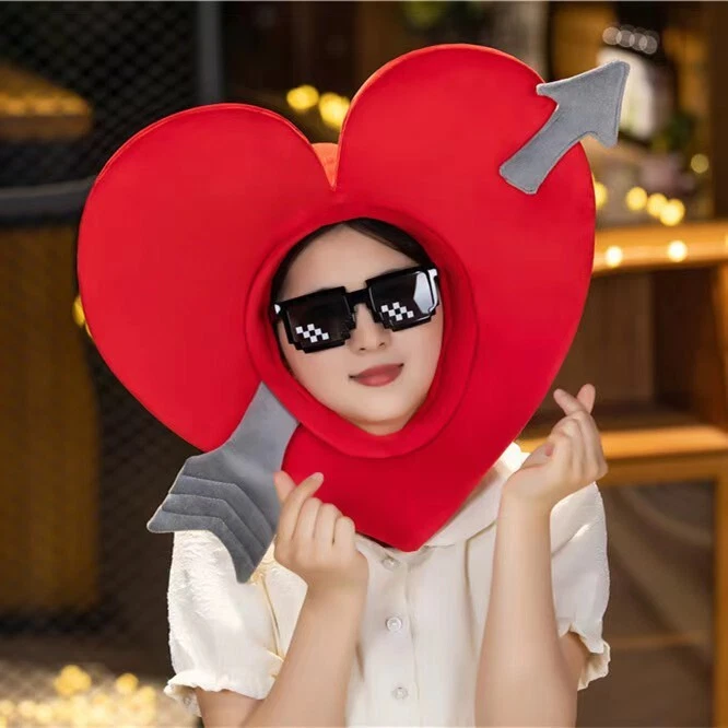 Valentines Day peach plush hood with funny Cupid arrow photo props