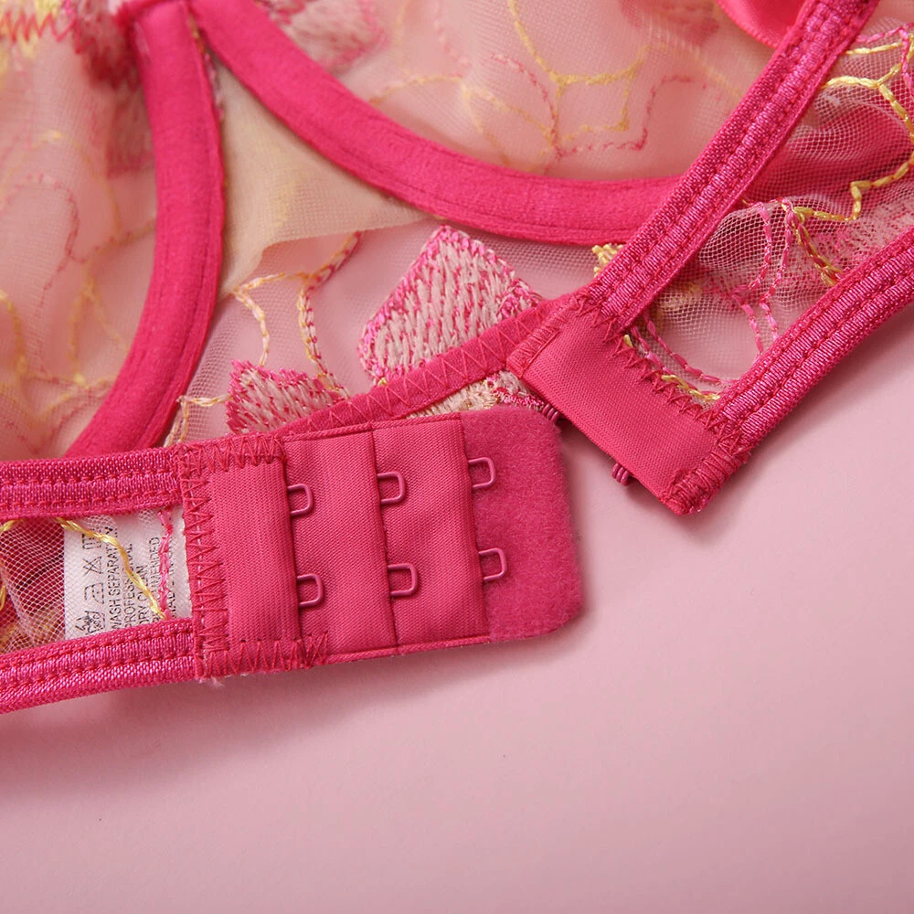 NEW Sexy Gauze Sleeves Off Shoulder Lingerie Set Hollow Out Garters Bra G-string