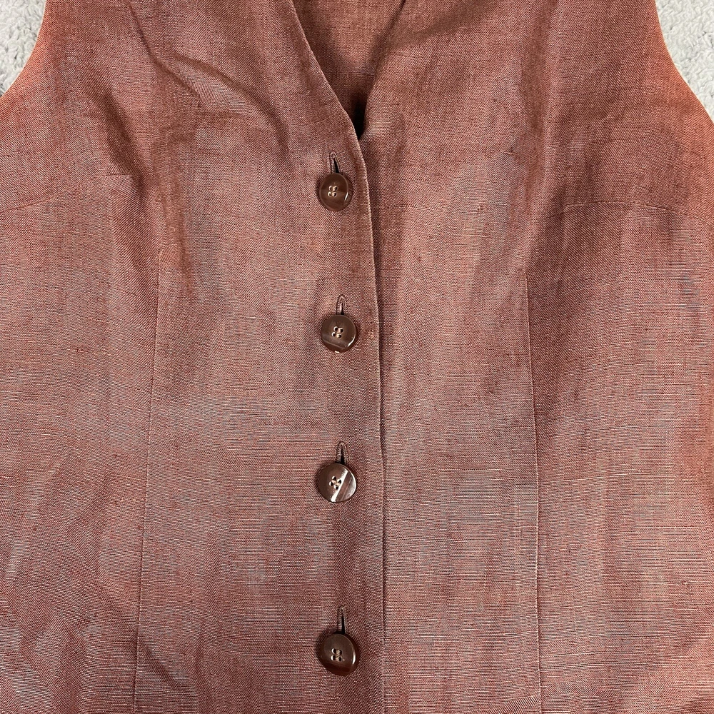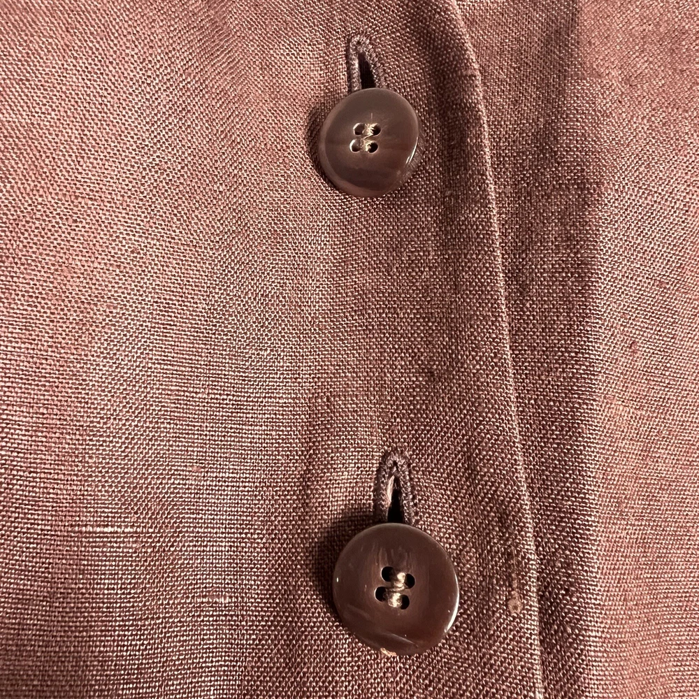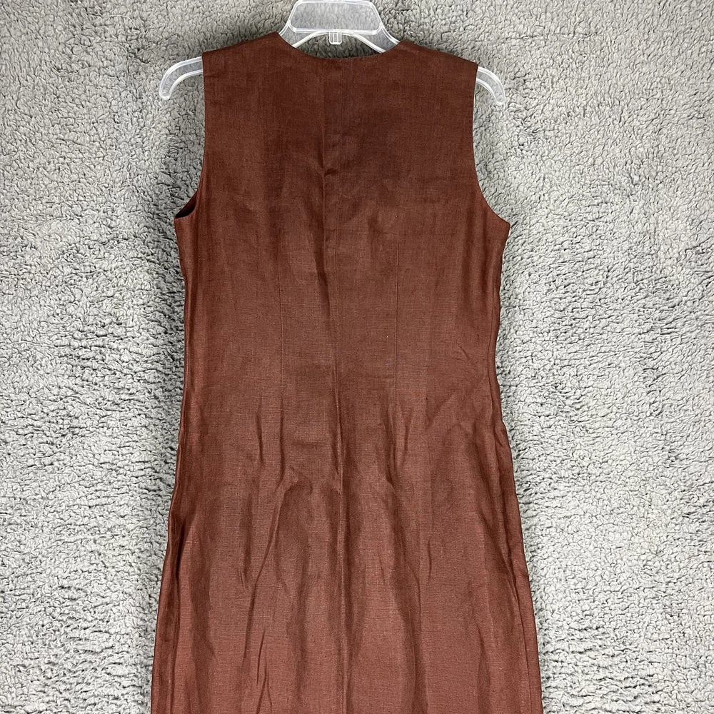 This beautiful Valerie Stevens maxi dress is a must-have for any vintage bohemian-inspired wardrobe. With its pure linen material and button-front design, this dress is both stylish and comfortable. The brown color and 1990s decade make it a unique vintage piece that is sure to turn heads. Perfect for a day dress occasion, this dress is available in size 4 and is an original piece. Its regular size type and women's vintage clothing category make it a great addition to any fashion-forward wardrobe. Don't miss out on the opportunity to add this stunning dress to your collection. An instant classic! Measurements are in photos and approximate.