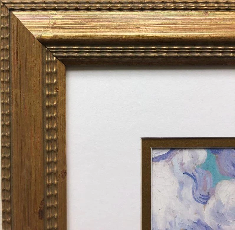Vincent Van Gogh "A Wheatfield with Cypresses" 1889 This Art print is: NEW CUSTOM FRAMED In a top quality gold WOOD Frame DOUBLE MATTED in White & gold Framed Size: 15.5" x 15.5" Image Size: 8.5" x 8.5" Framed in the USA Comes complete with installed ready to hang hardware Interested in different framing? Please Contact us! Visit our store for other listings by the art masters... makes wonderful pairs or groupings! THE FRAMING ALONE IS WORTH OVER $100!