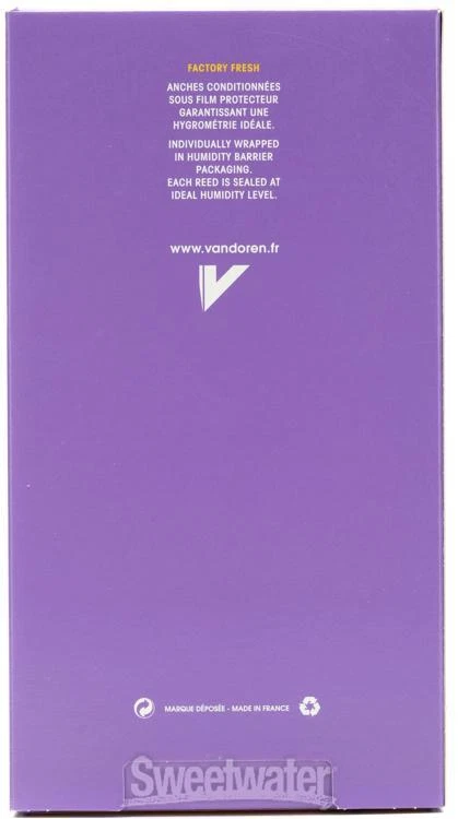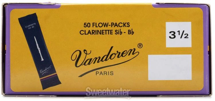 The Traditional Vandoren Bb Clarinet Reed Talk to any clarinet or sax player, and odds are at some point in their career, they or one of their colleagues relied on Vandoren reeds for every performance. Vandoren Traditional Bb Clarinet Reeds are found in instrument cases everywhere, with over 100 years of high-quality construction solidifying their place as a superior mass-produced woodwind reed. Vandoren Traditional reeds deliver incredible results across the instrument's full register, allowing for intricate, articulate playing with a highly responsive attack. They also lend exceptional depth to your playing, producing a fuller, clearer sound than comparable reeds with a flexibility that allows for legato and staccato playing of large intervals. And with their wide selection of strengths and package quantities, Vandoren reeds are catered to students and professionals alike.Vandoren: a rich legacy of top-tier reed making Since its establishment in 1905, Vandoren has been all about family. Founder Sweetwater is an Authorized Vandoren Dealer Genuine New Item Sweetwater's 2-year warranty Vandoren CR1035/50 - Traditional Bb Clarinet Reeds - 3.5 (50-pack) Bb Clarinet Reed, Strength 3.5 - 50-pack The Traditional Vandoren Bb Clarinet Reed Talk to any clarinet or sax player, and odds are at some point in their career, they or one of their colleagues relied on Vandoren reeds for every performance. Vandoren Traditional Bb Clarinet Reeds are found in instrument cases everywhere, with over 100 years of high-quality construction solidifying their place as a superior mass-produced woodwind reed. Vandoren Traditional reeds deliver incredible results across the instrument's full register, allowing for intricate, articulate playing with a highly responsive attack. They also lend exceptional depth to your playing, producing a fuller, clearer sound than comparable reeds with a flexibility that allows for legato and staccato playing of large intervals. And with their wide selection of strengths and package quantities, Vandoren reeds are catered to students and professionals alike. Vandoren: a rich legacy of top-tier reed making Since its establishment in 1905, Vandoren has been all about family. Founder Eugène Van Doren led the company to great prosperity, solidifying Vandoren as a worldwide presence that specialized in reeds, mouthpieces, accessories, and more. Three generations later, Vandoren continues to make waves in the woodwind industry, with clarinet and saxophone reeds playing a critical role in the company's continued success. Vandoren reeds are constructed from cane grown right in their fields located in the south of France, with all waste material recycled through composting and other means. These high-quality reeds deliver an incredible response in all playing registers, warmer than other similar reeds while adding an unmistakable depth and clarity to your playing. Best of all, Vandoren reeds are available for the complete family of clarinets and saxophones, with a wide variety of strengths, cuts, and pack sizes to suit the needs of players of all skill levels. Need to replenish your reed collection? Call your Sweetwater Sales Engineer today and add over a century of top-notch artistry to your toolkit with Vandoren reeds! Vandoren Traditional Bb Clarinet Reeds Features: High-performing Bb clarinet reed with over a century of design expertise Traditional reed with a thin tip and thick heart Produces a highly articulate, full-bodied tone with impeccable clarity Incredibly responsive across the full register Allows for intricate, articulate playing up high and down low Available in a wide variety of strengths to fit every player's needs Specification Detail Instrument Bb Clarinet Strength 3.5 Quantity 50-pack Material Cane Additional Features Thin Tip RETURN INFORMATION We want you to be completely happy with your purchase from Sweetwater. If you are not satisfied with your product, you may return it for a refund of the purchase price within 30 days. If your purchase was eligible for Free Shipping, the shipping cost will be deducted from your credit or refund. Returns must be in the complete and original packaging with all accessories and complete documentation (Owner's Manual, warranty card, quick start guides, etc.), show no signs of wear or use, and include a Return Authorization number or be subject to a restocking fee.