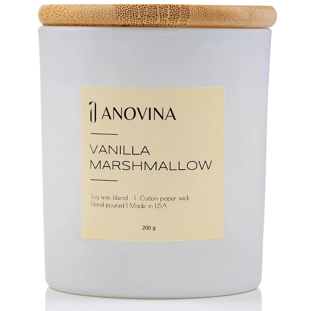 Anovina Vanilla Scented Candle with Gift Box. Non-Toxic Candles for Home, Secented Candle Gifts for mom, Glass Jar with Bamboo Lid Hand Poured in USA MADE FROM A NATURAL SOY WAX BLEND & QUALITY SCENTED OILS - Hand Poured in the USA, these candles by Anovina are made with human-safe and pet-safe scented oils and ingredients that are paraben-free, phthalate-free, formaldehyde-free and contain no VOCs. Swap those low-quality candles with a more natural candle that smells so good, you’ll want to eat it. These soy candles burn slowly so you can get more burn time from every candle. Just trim your wick so it burns evenly! STRONGER-SMELLING, LONG-LASTING, EVEN-BURNING CANDLES - Isn’t it the worst when you get a scented candle that doesn’t smell? These Anovina candles are sure to pass that test and all of the other must-haves when looking for the best candles. That’s because we discovered the most flawless oil-to-wax ratio – to give you powerfully scented candles that last, burn evenly, and smell so good you’ll want to taste them. Choose from Vanilla Marshmallow, Apple Cinnamon, Aloha Kiwi, Fresh Cut Rose & more. RICH & CREAMY VANILLA CAMPFIRE NOTES FOR SOOTHING COMFORT - These uniquely scented candles combine the most incredible aromas inspired by our favorite sweet treats, fun-filled holidays, tropical destinations & more. Unlike other candlemakers, we use ingredients that are safe and free of metal core wicks that can leach heavy metals and lead into the air you breathe. That’s why we chose to use pure cotton & paper wicks – so you can burn your favorite candles safely and guilt-free. THE PERFECT MATCH FOR RELAXING & ROMANTIC VIBES - Looking for the perfect candles to set the mood after a long day? These powerful but not overpowering aromatherapy candles may take the edge off and relieve stress, inspiring relaxation and helping you reset mentally, emotionally, and even physically. Scented candles can play an essential role in the physiological effects of mood, stress, working capacity, and overall well-being (Chryssa Chalkia, Accredited Clinical Counselor, 2020). A BEAUTIFULLY-PACKAGED GIFT FOR THEM OR FOR YOU! - Anovina candle scents are hard to forget and each one comes in a modern, reusable glass candle jar and attractive giftable box. These soy candles make great candle gifts for women and men who love the feeling of a warm, clean, candlelit room. For best results, trim your wick so your candle burns slower (approximately 50 hours burn time). One Anovina candle per medium-sized room is just what you need to make your home or office smell incredible. SHIPPING - We offer FREE shipping on all orders! - We ship within 3 business days of payment, usually sooner - We only ship to the lower 48 states, no APO/FPO addresses or PO Boxes allowed International buyers – please note: Import duties, taxes, and charges aren't included in the item price or postage cost. These charges are the buyer's responsibility. - Please check with your country's customs office to determine what these additional costs will be prior to bidding or buying. - We have confidence in our products, but if you are not fully satisfied please contact us within 30 days of purchase and you will get full refund. * Order Cancellation Policy ** You can return a product for up to 30 days from the date you purchased it. 1. The seller reserves the right to cancel the special case only due to eBay cancellation fee. 2. The decision of seller is the final. 3. The seller will respond to the cancellation request within 2 business days. Please wait for the result of cancellation. 4. In case the cancellation is not completed by some reasons, the buyer can follow the options below to get the refund. 4.1 The buyer can reject the item when it arrives. 4.2 The buyer can send the item back to the seller within 30 days If the buyer receives item (USA Shipment ONLY). The seller will provide the FREE return label to the buyer when the buyer opens " Return Item" case on eBay by using the reason as "Change my mind" ONLY. 5. When buyer has placed the order. The order will be processed and completed by automatic warehouse system within 5 minutes. In case that buyer sends the cancellation request after 5 minutes of placing the order, the request will be rejected. **Sending direct message to cancel the order is not allowed for every case.* Return Policy For the return case - If buyer would like to return the items for refund or replacement, please CONTACT SELLER to receive the free return label from seller. The refund or replacement will be processed with the tracking number of return label which is provided by seller only. The other ways of return which are not approved by seller will not be processed for the refund or replacement.