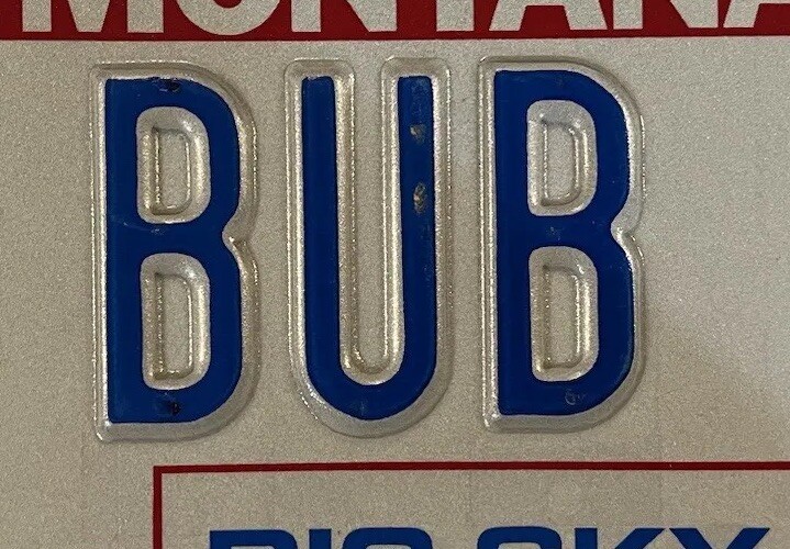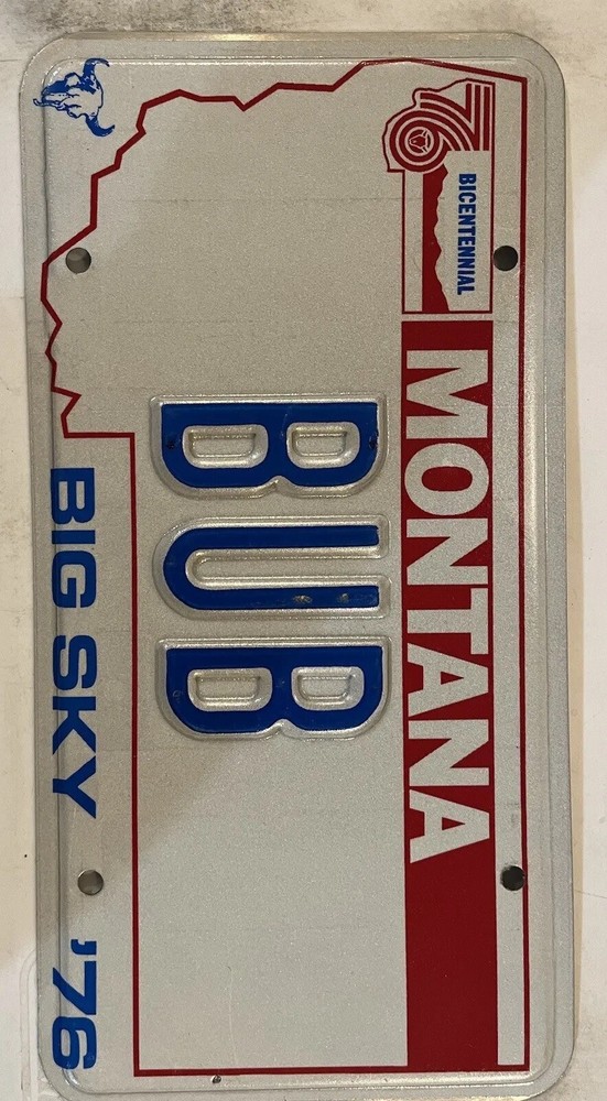 You are bidding on a vintage 1976 Montana embossed “Bicentennial” style vanity "BUB" license plate previously issued to a Montana motorist at an additional fee in the amount of $40.00 for a personalized tag (in addition to regular registration charges) by the Montana DMV. The license plate listed is for collecting/display purposes only, and fully complies with all eBay listing policies. It is no longer valid and is at least three years old. It is sold as a collectible, hobby or souvenir item and never for display on any type of motor vehicle. All buyers must agree to not misrepresent their intent in making this purchase and further agree to not misuse this license plate in any way that will violate any state, federal or local laws, statutes and/or ordinances. International bidders welcome - $7.95 shipping for USA - WE ARE HAPPY TO COMBINE auctions to save you postage so long as they are paid for in one payment, and will reduce postage costs for auctions over 3 plates if we can send more economical. Please include item numbers and pay for all orders within 20 days, as it is difficult and time consuming to pull up long past auctions. I have an almost complete PERSONALIZED & MONTANA OPTIONAL pl8 collection for sale. Feel free to ask for other designs. Estimated delivery dates - include seller's handling time, and will depend on shipping service selected and receipt of cleared payment. Delivery times may vary, especially during peak periods.