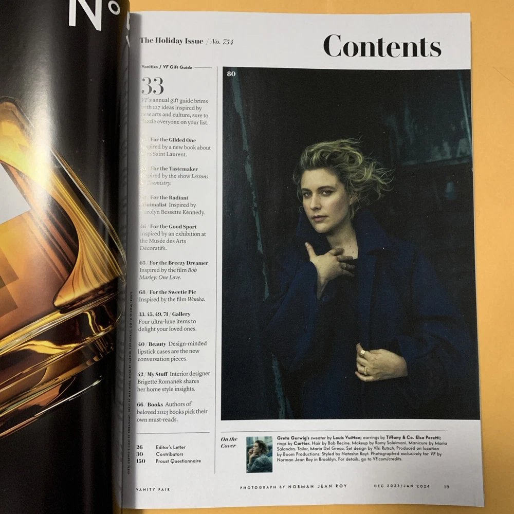 Vanity Fair - Greta Gerwig Cover - Dec2023/Jan 2024 - Real Housewives Article Brand New Unread Copy. Please view all photos for product condition. Thank you :)!