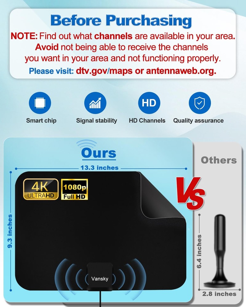 Wow, this antenna is a total game-changer! I cut the cord and now get all my local channels in stunning, crystal-clear HD for free. The setup was super easy, and the reception is fantastic. Highly recommend!