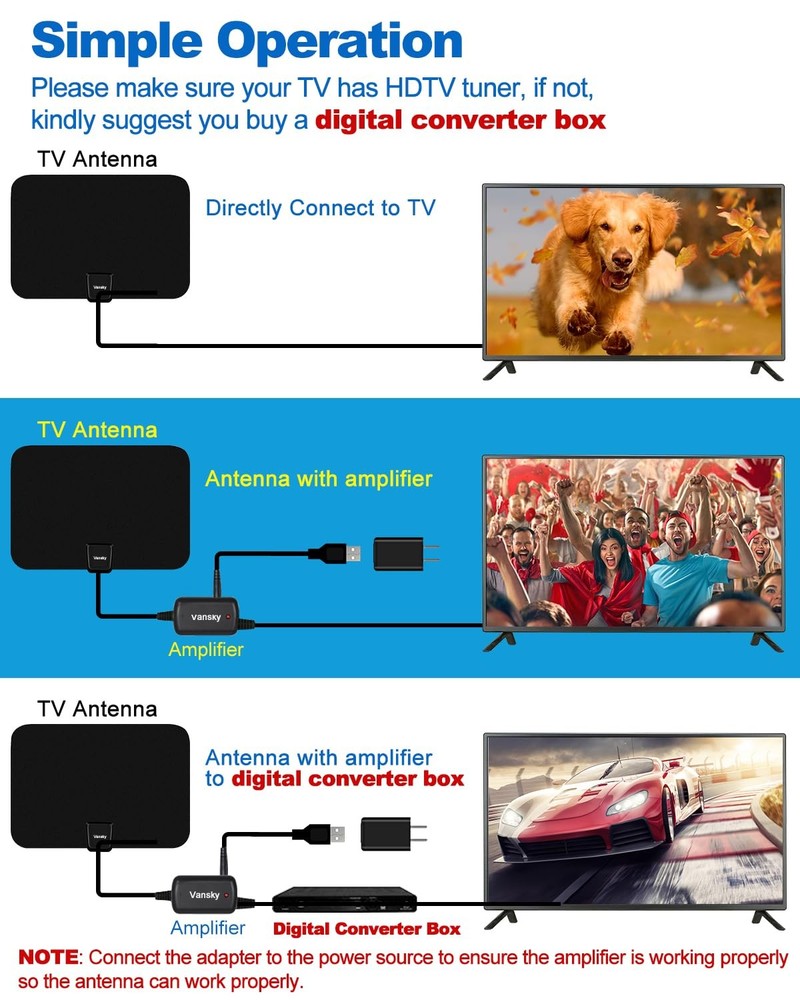 Vansky 2018 Upgraded Digital HDTV Antenna Indoor Amplified 50-80 Mile Range 4K UHF Ready