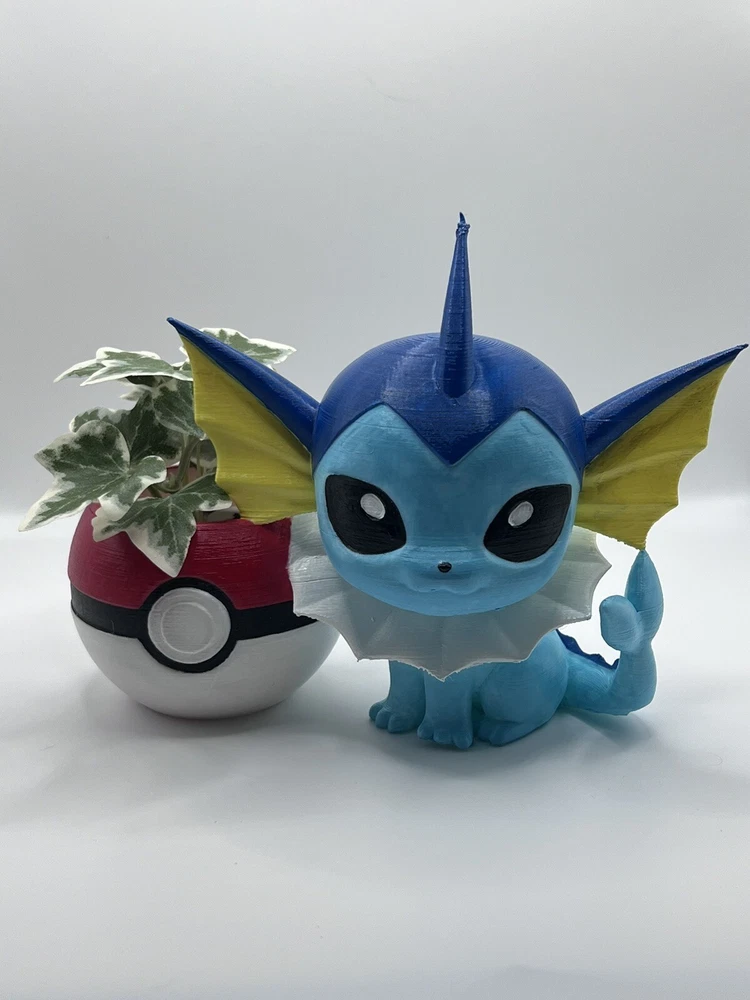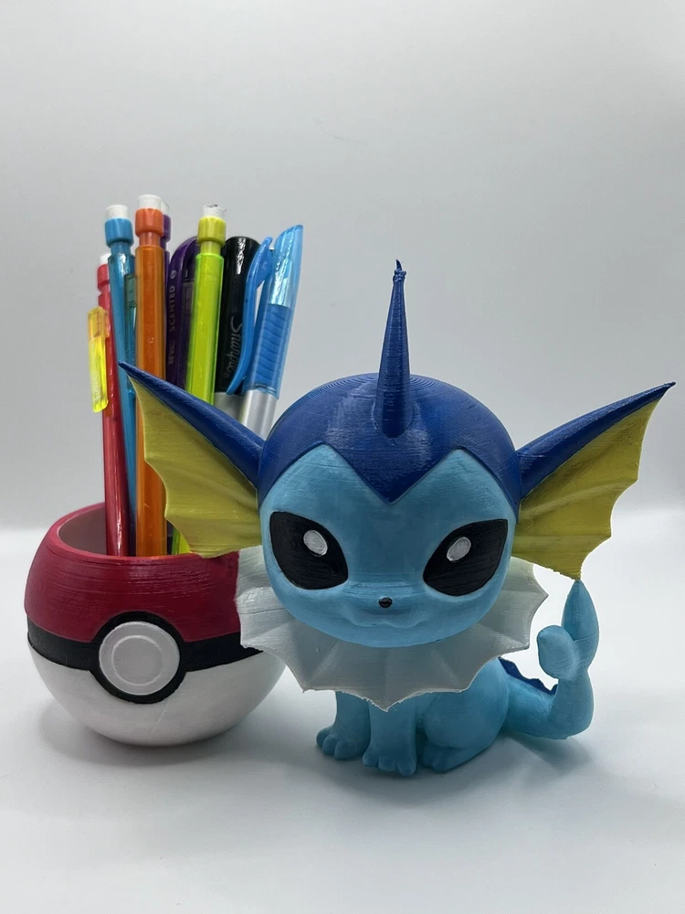 3D printed and hand painted Vaporeon planter or desk cup. Printed with PLA+. Dimensions can be seen in the photos. You get the exact item in the photos! Plant and pens are NOT included! Each planter/cup is sealed with a coat of clear coat. If you have any questions, feel free to message me. Disclaimer: These are hand painted by myself, personally. I am by no means a professional painter. They are not perfect and may have flaws with the painting. You are supporting a person on disability looking for a hobby to keep themselves busy. So thank you for understanding and supporting my hobby! You get the exact item in the photos. Each time they are listed, new photos are uploaded as each one is unique and never painted or printed exactly the same. I try to always get your items out the same or next day! I pack them with care so they reach you intact. Check my other listings for other 3D printed planters!