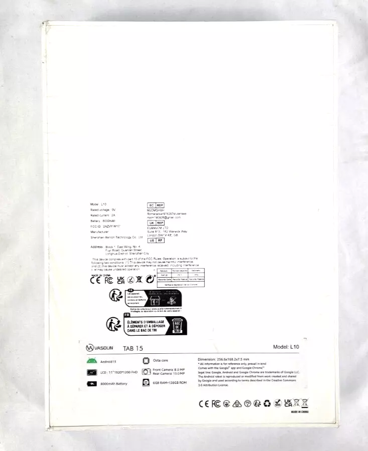 Internet Connectivity: Wi-Fi + 4G Storage Capacity: 128 GB Operating System: Android Type: Tablet Model: Vasoun Tab15 Brand: Vasoun RAM Size: 6 GB Screen Size: 11 in