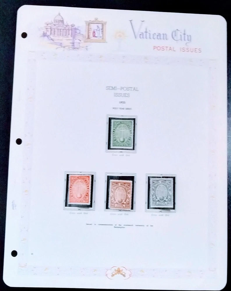 Very Nice complete set of four Vatican City semi-postage stamps. Mounted on White Ace album pages. Scott's #s B1-B4. All are MH. Holy Year. Issued 1933. Please visit my store where I combine shipping on multiple purchases.