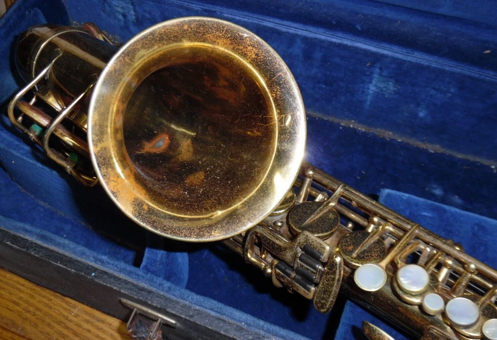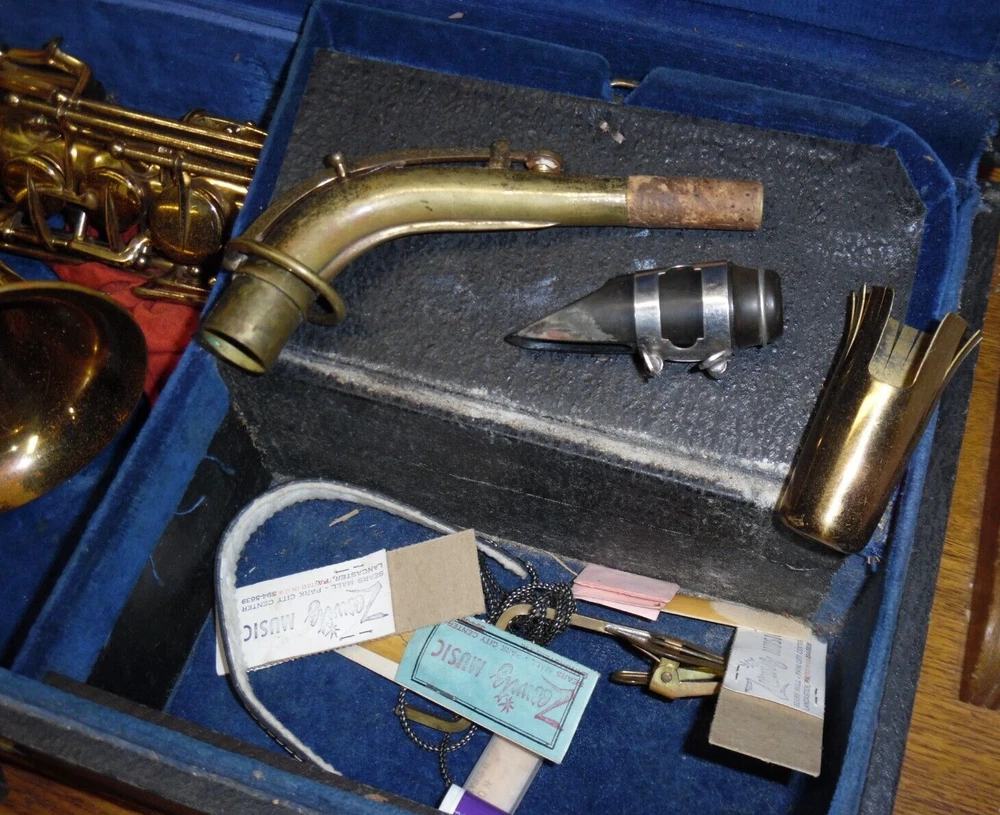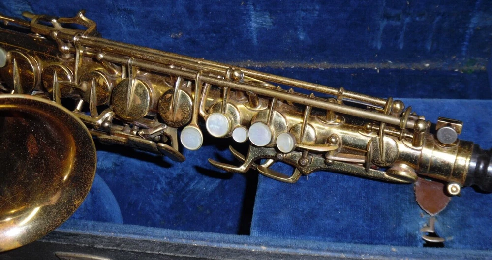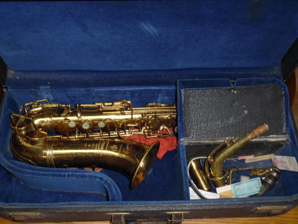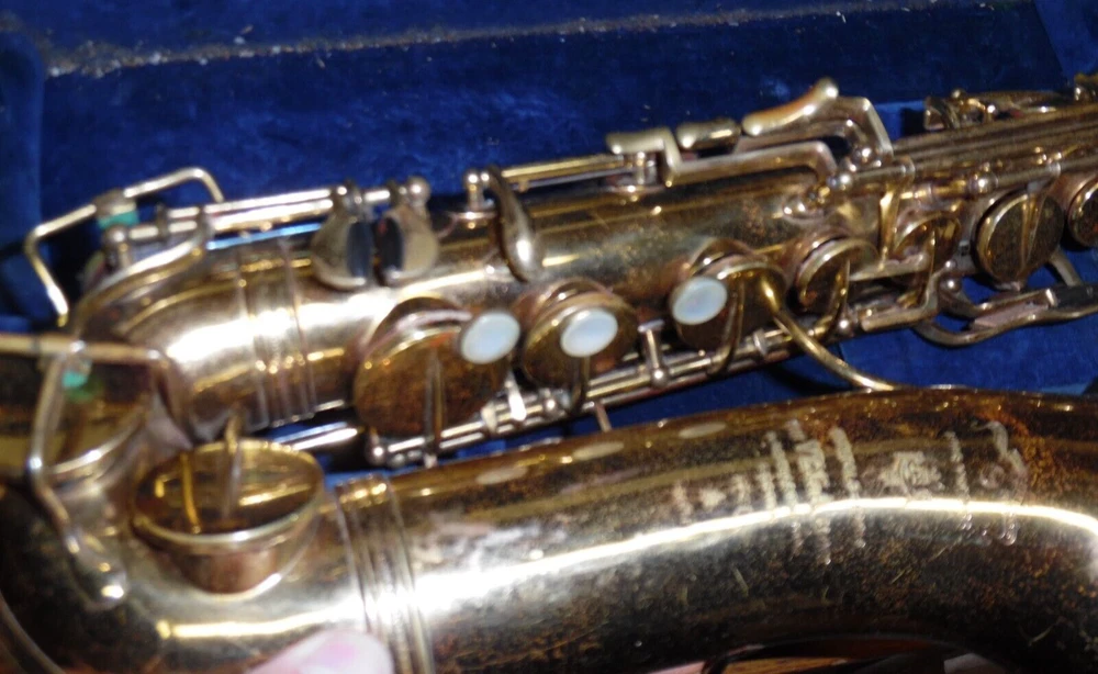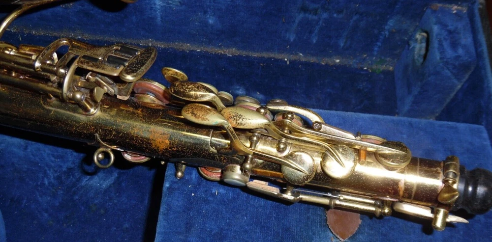 Here is an old Vega 3721 saxophone. It measures about 21 1/2" tall without the mouthpiece inserted. The horn bell is 4 1/2" in diameter. NOTE: It shows much pitting, scratching and wear. The case is worn and dirty. See pictures for condition. The side reads, " Exposition Universelle De Paris 1900, Hors Concours, Monopole Paris, The Vega Co. Inc Exclusive USA Distribution Boston 3721 France." The neck has the number "14 1(?)6". Buyer agrees to pay the calculated amount of shipping. We reserve the right to ship UPS/FedEx instead of Parcel Select. Ebay will collect sales tax if applicable. John 3:16 <><