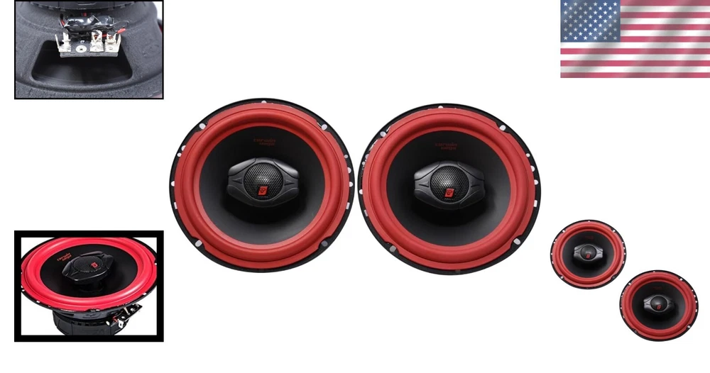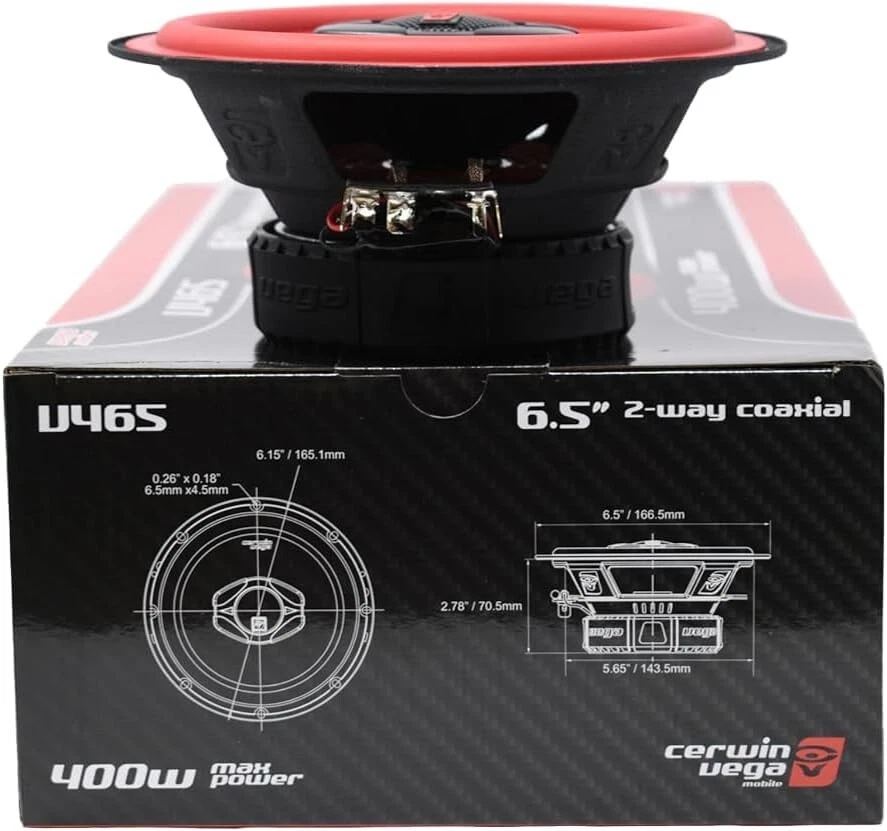 Vega Series 6.5" Coaxial Speakers with Red Rubber Surround & Superior Sound ‹ › ‹ › ‹ › ‹ › ‹ › ‹ › ‹ › Vega Series 6.5" Coaxial Speakers Elevate your car audio experience with these stunning Vega Series 6.5" Coaxial Speakers. Designed to provide exceptional sound quality and powerful performance, these speakers embody the iconic Cerwin Vega legacy since 1954. Key Features: Signature red rubber surround for an iconic look and enhanced durability. Powerful 2-way component speaker set with 75W RMS and 400W MAX power handling. Advanced low-resonant deep drawn stamped steel basket for superior sound clarity. Curvilinear mica fiber composite cone for a balanced, dynamic sound quality. 1-inch titanium dome tweeters for extraordinarily clear highs and detailed sound. Compact and durable design: 47.7x40.1x23.4 cm, 2.20 kg. 12dB/octave crossover for optimal frequency distribution. Why Choose Vega Series Speakers? For audiophiles and casual listeners alike, the Vega Series 6.5" Coaxial Speakers deliver a robust audio experience that brings your favorite music to life. With an impressive frequency response of 55Hz-20KHz and sensitivity of 94dB, you’ll enjoy crisp, powerful sound across all genres. Designed with car enthusiasts in mind, these speakers not only promise durability but also a visual appeal that fits seamlessly within your vehicle's interior. The heritage of Cerwin Vega ensures that you are investing in a product that’s built for performance. Features That Matter: Easy installation with a mounting diameter of 5.65" (143.5mm) and depth of 2.78" (70.5mm). Ideal for enhancing your existing car speaker system. Backed by decades of innovation and audio excellence. Upgrade your sound journey with the Vega Series 6.5" Coaxial Speakers and experience the difference that premium quality and exceptional design can make. Perfectly engineered to deliver an unmatched listening experience, these speakers are a must-have for anyone serious about their car audio. Shipping Free & Fast Shipping - We offer free shipping to most of the USA with a normal delivery time of 3-7 days. However, due to the current situation, additional delivery time (up to 3 weeks) may be required for some items. Alternative Carriers - We may use alternative carriers (e.g. USPS, FedEx, UPS, etc.) to ensure your package arrives safely and on time. Due to the use of multiple carriers, we are unable to provide a tracking number automatically. Handling Time - Orders are processed and shipped within 1-2 business days of receiving cleared payment. Shipping Restrictions - Shipping to Alaska, Hawaii, Puerto Rico, Guam, and other US territories may incur shipping charges or delivery restrictions. Please contact us before ordering, or your order can be refunded/cancelled. State Restrictions - There may be restrictions based on your state of purchase. For example, certain items may not be shipped to California due to state regulations. Contact for Tracking Updates - If you require tracking updates or have any concerns about the delivery of your order, please feel free to contact us, and we will be happy to assist you. Return Please see our eBay Return Policy. Thank you. Payment We accept all major credit cards, PayPal, and Apple Pay for your convenience. Your payment information is secure and encrypted to ensure a safe and seamless transaction. Please complete your payment within 3 days of purchase to avoid any delays in shipping. Feedback Your feedback is extremely important to us. We strive to provide the best products and customer service possible. If you are satisfied with your purchase, please take a moment to leave us a positive review. If you have any concerns or issues with your order, please contact us before leaving negative feedback. We are committed to resolving any problems and ensuring your satisfaction. Contact Us If you have any questions or concerns, please feel free to reach out to our customer support team. You can contact us through the eBay messaging system. We are available Monday to Friday, 9:00 am to 5:00 pm EST, and we will do our best to respond to your inquiry within 24 hours. Thank you for supporting our small family business! MPN: Car_Speakers UPC: Not Set Model: Not Set Brand: Unbranded Speaker Size: 6.5in. Type: Coaxial Speakers RMS Power: 75W Country/Region of Manufacture: Not Set