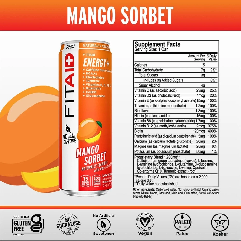 Vegan & Gluten-Free FITAID ENERGY: 200mg Caffeine, 24-Pack Ice-Cold Delight ‹ › ‹ › ‹ › ‹ › ‹ › ‹ › ‹ › ‹ › ‹ › Vegan & Gluten-Free FITAID ENERGY - 24-Pack Ice-Cold Delight Fuel your workouts and elevate your performance with FITAID ENERGY, an exceptional blend of all-natural ingredients designed to recharge and recover. Key Features: 200mg Natural Caffeine: A powerful boost for your workouts, perfect for pre or post-exercise. Optimal Performance Formula: Contains BCAAs, Quercetin, Electrolytes, and Omega-3s, ensuring comprehensive recovery. Only 15 Calories: Perfect for those following Keto, Paleo, or those looking to maintain a balanced diet. Bright, Crisp Natural Flavors: Enjoy four electric flavors like Mango Sorbet with a clean finish and no aftertaste, without any Sucralose. BPA Free: Ensuring your health and safety while enjoying your drink. 3g of Net Carbs: Ideal for fitness enthusiasts conscious of their macros. Benefits: Recharge and recover with a blend of vitamins and supplements, perfect for all types of workouts, whether HIIT, weight training, Pilates, or intense sports. Designed to fight off fatigue, helping you maintain your fitness momentum. Supplement for long drives, studying, energizing at work, or just getting through a busy day. Formulated to support joint and muscle health, aiding in rapid recovery. Enhances stamina and endurance during rigorous exercise. Why Choose FITAID ENERGY? If you are passionate about your fitness journey and refuse to compromise on quality, our FITAID ENERGY is the ideal choice. With its carefully selected ingredients like BCAAs and Omega-3s, it not only boosts your energy levels but also supports muscle recovery and joint health, allowing you to push harder and go further. This 24-pack offers incredible value and variety, ensuring that you have the fuel you need at your fingertips. Enjoy yours ice-cold at 40°F (4°C) for a revitalizing treat. Make each workout count with FITAID ENERGY – the supplement that supports your lifestyle. Shipping Free & Fast Shipping - We offer free shipping to most of the USA with a normal delivery time of 3-7 days. However, due to the current situation, additional delivery time (up to 3 weeks) may be required for some items. Alternative Carriers - We may use alternative carriers (e.g. USPS, FedEx, UPS, etc.) to ensure your package arrives safely and on time. Due to the use of multiple carriers, we are unable to provide a tracking number automatically. Handling Time - Orders are processed and shipped within 1-2 business days of receiving cleared payment. Shipping Restrictions - Shipping to Alaska, Hawaii, Puerto Rico, Guam, and other US territories may incur shipping charges or delivery restrictions. Please contact us before ordering, or your order can be refunded/cancelled. State Restrictions - There may be restrictions based on your state of purchase. For example, certain items may not be shipped to California due to state regulations. Contact for Tracking Updates - If you require tracking updates or have any concerns about the delivery of your order, please feel free to contact us, and we will be happy to assist you. Return 30-Day Hassle-Free Returns - We want you to be completely satisfied with your purchase. If you are not, you can return the item within 30 days of receiving it for a full refund or exchange. Easy Return Process - To start a return, simply contact us and we will provide you with a prepaid return shipping label and detailed instructions. Restocking Fee - There are no restocking fees for returns. However, the buyer is responsible for return shipping costs if the return is not due to a seller's error. Refund Processing Time - Refunds will be processed within 5 business days of receiving the returned item in its original condition. Payment We accept all major credit cards, PayPal, and Apple Pay for your convenience. Your payment information is secure and encrypted to ensure a safe and seamless transaction. Please complete your payment within 3 days of purchase to avoid any delays in shipping. Feedback Your feedback is extremely important to us. We strive to provide the best products and customer service possible. If you are satisfied with your purchase, please take a moment to leave us a positive review. If you have any concerns or issues with your order, please contact us before leaving negative feedback. We are committed to resolving any problems and ensuring your satisfaction. Contact Us If you have any questions or concerns, please feel free to reach out to our customer support team. You can contact us through the eBay messaging system. We are available Monday to Friday, 9:00 am to 5:00 pm EST, and we will do our best to respond to your inquiry within 24 hours. Buy it now and enjoy a pleasant shopping experience! Date of Creation: 2023 Brand: Unbranded Color: Multi-color Original/Reproduction: Not Set Type of Advertising: Sticker Country/Region of Manufacture: Not Set Theme: Energy Drinks