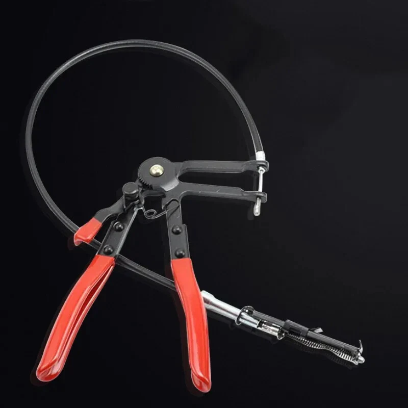 Feature: 1.100% brand new. 2.Allows technician to access the flat-type hose clamps located in hard-to-access areas. 3.Pliers has locking mechanism to hold clamp in the open position. 4.High-quality Handle,the surface is smooth, beautiful and comfortable to use. 6.Makes removal and installation of clamp much easier. 7.Heavy 24" cable flexes to almost any position. 8 Clamping head Scope: 18mm-50mm. Specification: Material: Carbon Steel Line length:620mm Color:Red Weight:500g Package includes: 1*Hose clamps pliers