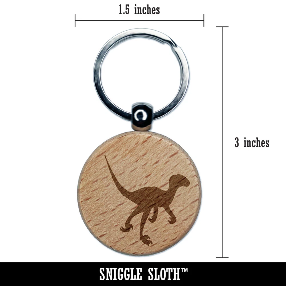 Velociraptor Dinosaur Solid Engraved Wood Round Keychain Tag Charm