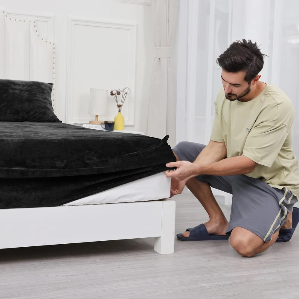 Chosen Velvet Fabric: The fitted sheet is made of 100% selected velvet fabric, fluffy, soft and skin-friendly, providing comfy and cozy sleeping experience for you and your family. Elegant Appearance: The velvet fabric with specail craftsmanship feature not only soft and uinform luster, but also amazing light and shadow effect in different light intensity and angle. Giving a luxurious allure for an impressive coordinating foundation with our premium velvet fitted sheet. Secure & Snug Fit: Measuring 80" by 60" with 15" deep pocket, our fitted sheet is designed for all queen sized bed mattress. With full and reinforced elastic band at backside, it will safely and securely cover your mattress. Easy Care: Machine wash separately in cold water, gentle cycle. Do not bleach. Tumble dry on low heat or lay flat to dry. Remove promptly. Warm iron as needed. No pilling, no shrink, no fade, no shed, labor tests show that the velvet fitted sheet keep its shape and stay brands new after 102+ wash cycles. Package Include: PHF Super Soft Velvet Fitted Sheet Queen(80" x 60" x15''), perfect for queen sized bed mattress. Product Description The video showcases the product in use. The video guides you through product setup. The video compares multiple products. The video shows the product being unpacked. Selected Velvet PHF fitted sheet is made of 100% selected velvet, sumptuously soft, fluffy and cozy, providing extreme comfort for sweet sleep. Due to a gentle textile process that ensures no shedding or pilling. 360° Extra Strong Elastic Each fitted sheet has full encased elastic band covered with self-fabric at the bottom, can fit your bed mattress snugly and safely without any shifting. 15 Inches Deep Pocket Our premium fitted sheet with deep pocket can stretches up to 15 inches, pull snugly over any mattress up to 15 inches effortlessly and simply, go neatly round the corners to stay in place. Easy to Use Its stretchy or elasticized edges make it a breeze to slip on and off, saving time and effort during bed making and changing linens. 1 Multiple Colors 2 Size Refrence PHF Luxurious & Cozy Fitted Sheet Material Truly Velvet Truly Velvet 100% Washed Cotton 100% Viscose Made from Bamboo Truly Velvet Size Twin/Full/Queen/King/CK Twin/Queen/King Twin/Full/Queen/King Twin/Queen/King Twin/Queen/King Color 10 Colors Available 6 Colors Available 12 Colors Available 11 Colors Available 5 Colors Available Price 28.99-37.99 25.99-32.99 21.99-27.99 25.99-35.99 26.99-33.99 Features Elegant Appearance, Soft, Warm Ultra Soft, Warm Cooling, Breathable Soft, Skin-friendly Soft, Skin-friendly Season Autumn,Winter Autumn,Winter Spring, Summer All Season Fall Winter and Spring