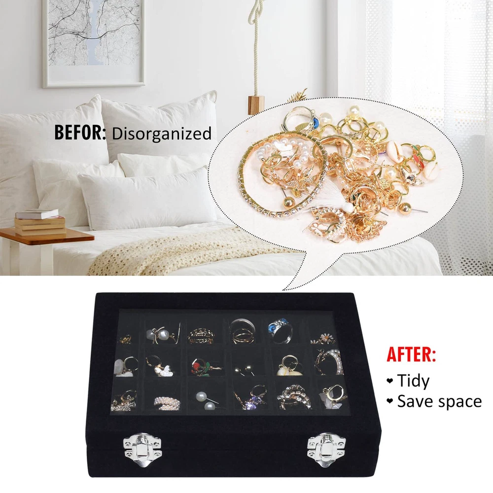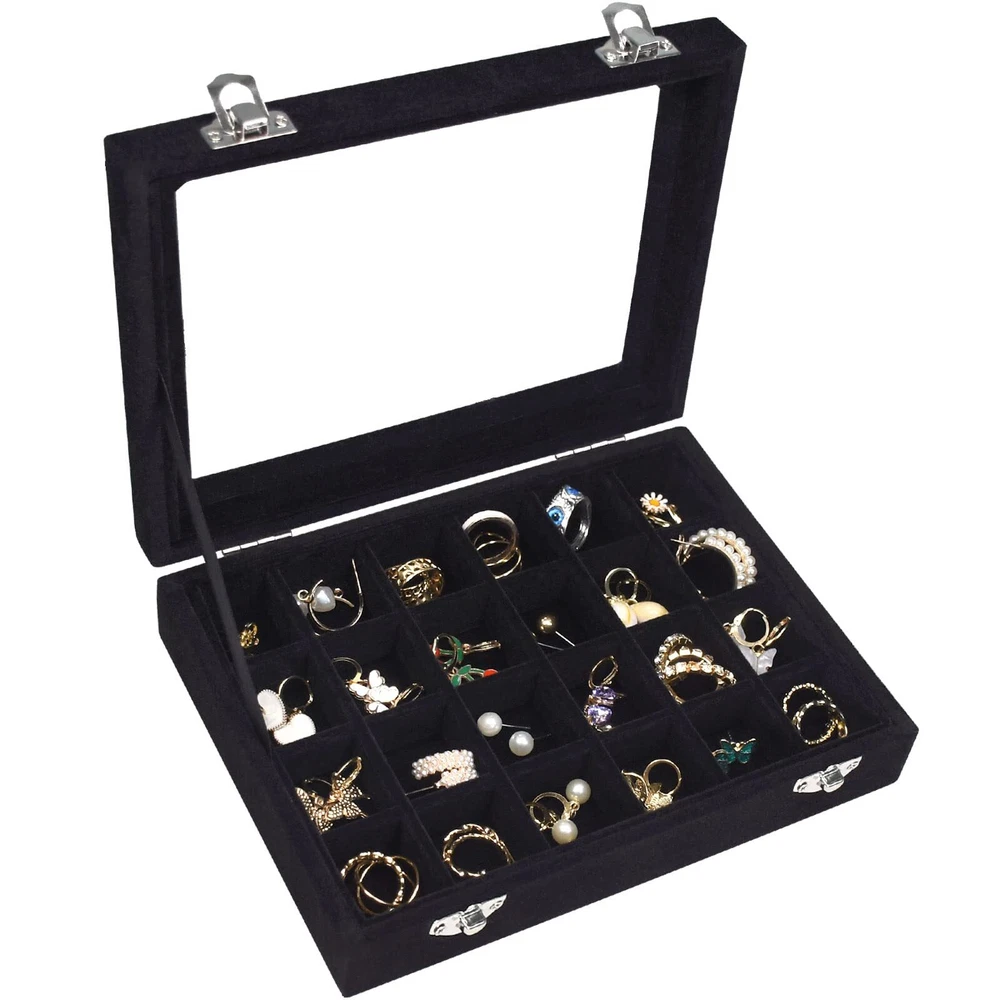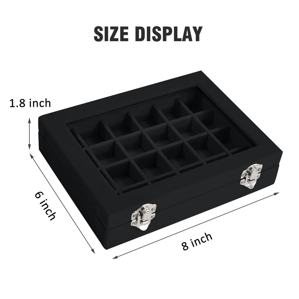 Velvet Jewelry Box 24 Grid Jewelry Ring Display Organiser Box Tray Holder Case Product features: The Victor Jewelry Display Organizer Tray is wrapped in high-quality velvet fabric and replaced with regular cardboard through durable composite boards, making the product suitable for long-term use. At the same time, it ensures that the jewelry display box can effectively protect your jewelry from scratches. Easy to carry: The size of the Vioter Jewelry Display Storage Box is 8in X 6in X 1.8in. The product is lightweight, easy to carry, easy to store, and does not take up too much space. No matter where you are, the Vioter Velvet Jewelry Storage Box helps organize your rings, earrings, and other accessories. Focus on practicality: The lid is composed of transparent glass covers, which can quickly discover the jewelry you are looking for through the glass. To prevent the lid from accidentally opening when carrying the jewelry display box, we have adopted a design of two locks. Extended use: The detachable partition design allows you to adjust your jewelry needs by disassembling or adding partitions to meet your storage needs. At the same time, you can use it as a birthday, Valentine's Day, Mother's Day, or Christmas gift to give to your mother, girlfriend, wife, daughter, colleagues, friends, and so on. Follow Services: We focus on the quality of our products and just hope that we can do more for you. In addition to the products, we also hope that our service can satisfy you. Please feel free to contact us at any time. Shipping We offer FREE shipping on all orders! We ship within Three business days of payment, usually sooner. We use a selection of shipping services such as UPS, FedEx, USPS etc. We only ship to the lower 48 states, no APO/FPO addresses or PO Boxes allowed. Local pickups and combined shipping options are not provided at this time. Return You can return a product for up to 30 days from the date you purchased it. Any product you return must be in the same condition you received it and in the original packaging. Please keep the receipt. Payment We accept payment by any of the following methods: PayPal Please pay as soon as possible after winning an auction, as that will allow us to post your item to you sooner! Feedback Customer satisfaction is very important to us. If you have any problem with your order, please contact us and we will do our best to make you satisfied. Contact Us If you have any queries, please contact us via ebay. We usually respond within 24 hours on weekdays. Please visit our eBay store to check out other items for sale! Thank you for shopping at our store.