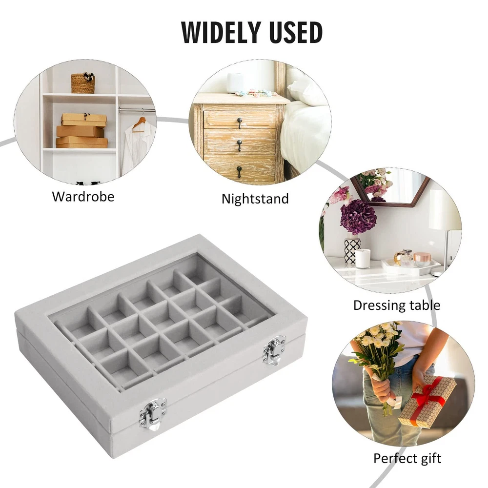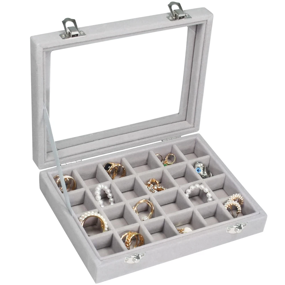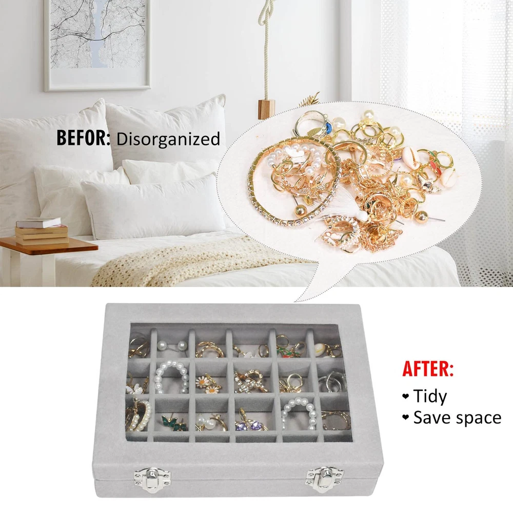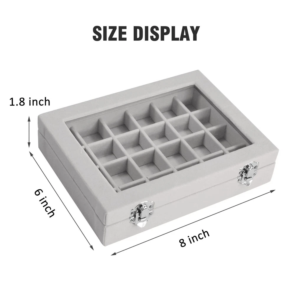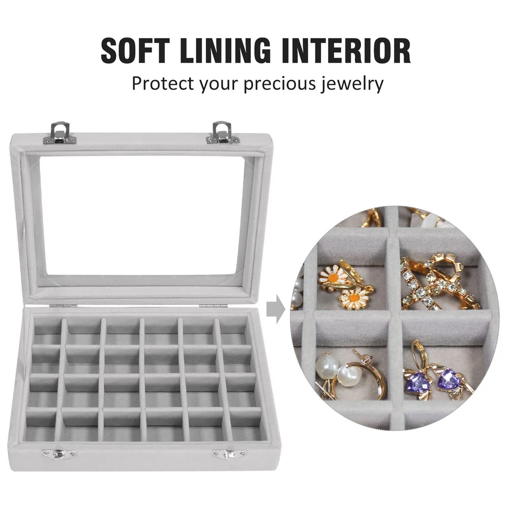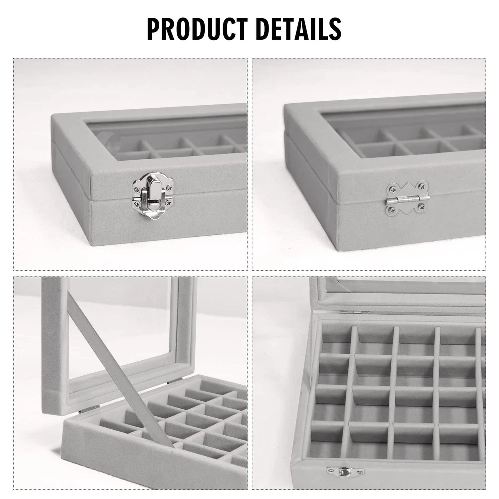 Velvet Jewelry Box 24 Grid Jewelry Ring Display Organiser Box Tray Holder Earrings Storage Case for Girls Wife Mom Women (Gray) Product features: The Victor Jewelry Display Organizer Tray is wrapped in high-quality velvet fabric and replaced with regular cardboard through durable composite boards, making the product suitable for long-term use. At the same time, it ensures that the jewelry display box can effectively protect your jewelry from scratches. Easy to carry: The size of the Vioter Jewelry Display Storage Box is 8in X 6in X 1.8in. The product is lightweight, easy to carry, easy to store, and does not take up too much space. No matter where you are, the Vioter Velvet Jewelry Storage Box helps organize your rings, earrings, and other accessories. Focus on practicality: The lid is composed of transparent glass covers, which can quickly discover the jewelry you are looking for through the glass. To prevent the lid from accidentally opening when carrying the jewelry display box, we have adopted a design of two locks. Extended use: The detachable partition design allows you to adjust your jewelry needs by disassembling or adding partitions to meet your storage needs. At the same time, you can use it as a birthday, Valentine's Day, Mother's Day, or Christmas gift to give to your mother, girlfriend, wife, daughter, colleagues, friends, and so on. Follow Services: We focus on the quality of our products and just hope that we can do more for you. In addition to the products, we also hope that our service can satisfy you. Please feel free to contact us at any time. Shipping We offer FREE shipping on all orders! We ship within Three business days of payment, usually sooner. We use a selection of shipping services such as UPS, FedEx, USPS etc. We only ship to the lower 48 states, no APO/FPO addresses or PO Boxes allowed. Local pickups and combined shipping options are not provided at this time. Return You can return a product for up to 30 days from the date you purchased it. Any product you return must be in the same condition you received it and in the original packaging. Please keep the receipt. Payment We accept payment by any of the following methods: PayPal Please pay as soon as possible after winning an auction, as that will allow us to post your item to you sooner! Feedback Customer satisfaction is very important to us. If you have any problem with your order, please contact us and we will do our best to make you satisfied. Contact Us If you have any queries, please contact us via ebay. We usually respond within 24 hours on weekdays. Please visit our eBay store to check out other items for sale! Thank you for shopping at our store.