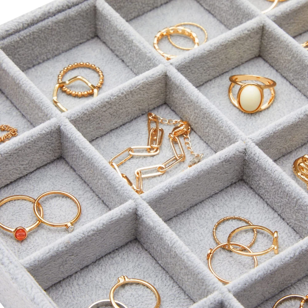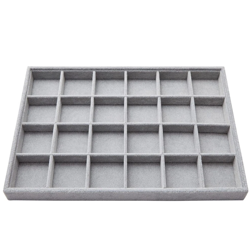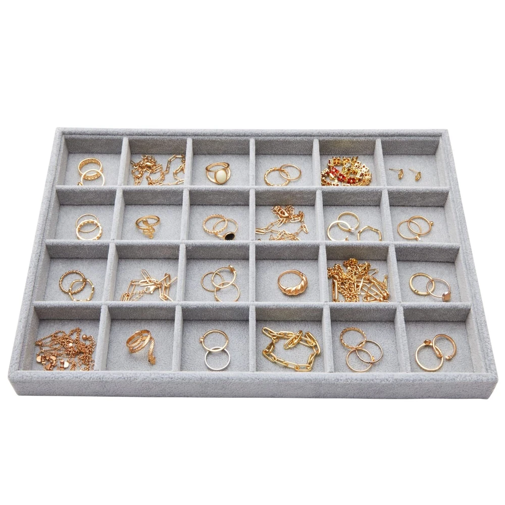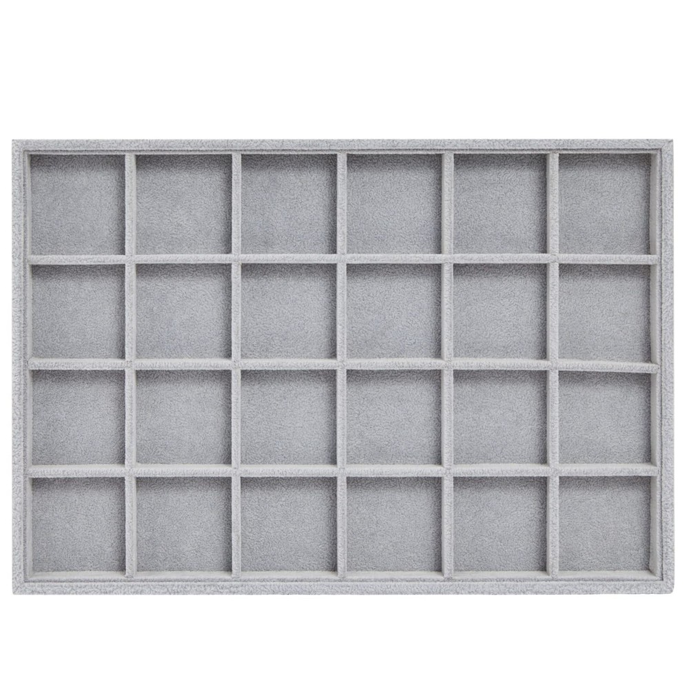 Velvet Jewelry Organizer Tray for Earrings, Stackable 24 Grid Storage for Rings (Gray, 14x10 in) Stackable Earring Tray: Use this 24 grid jewelry organizer to hold rings, earrings, necklaces, bracelets, and other small items; the trays easily fit in drawers and nightstands Home Organization: This velvet earring tray is ideal for giving as a gift to loved ones for weddings, anniversaries, birthdays, and Valentine's day; it easily stacks to save space Material: Our jewelry grid organizer is made of soft, quality velvet material and a durable wooden tray Dimensions: This gray stackable jewelry organizer measures 13.5 x 9.5 inches, are 1.2 inches thick and has 24 compartments measuring 2 x 2 inches Package Contents: In this pack, you will receive 1 gray velvet jewelry grid tray to organize and display all of your precious items Shipping We offer FREE shipping on all orders! We ship within Three business days of payment, usually sooner. We use a selection of shipping services such as UPS, FedEx, USPS etc. We only ship to the lower 48 states, no APO/FPO addresses or PO Boxes allowed. Local pickups and combined shipping options are not provided at this time. Return You can return a product for up to 30 days from the date you purchased it. Any product you return must be in the same condition you received it and in the original packaging. Please keep the receipt. Payment We accept payment by any of the following methods: PayPal Please pay as soon as possible after winning an auction, as that will allow us to post your item to you sooner! Feedback Customer satisfaction is very important to us. If you have any problem with your order, please contact us and we will do our best to make you satisfied. Contact Us If you have any queries, please contact us via ebay. We usually respond within 24 hours on weekdays. Please visit our eBay store to check out other items for sale! Thank you for shopping at our store.