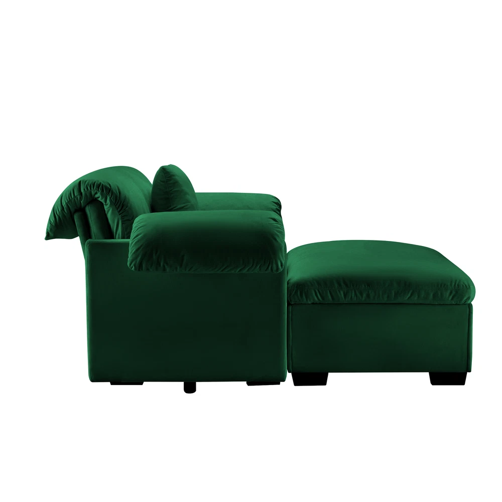 This sofa is stunning—the velvet fabric feels luxurious, and the unique fluffy armrest and backrest pillows give it a dreamy, cloud-like comfort. The modern design adds a stylish touch to any space while keeping it cozy. The high-resilience cushions make sitting or napping pure bliss. The rich colors elevate the look, making it a perfect centerpiece for a refined yet inviting living area. Absolute comfort meets elegance!