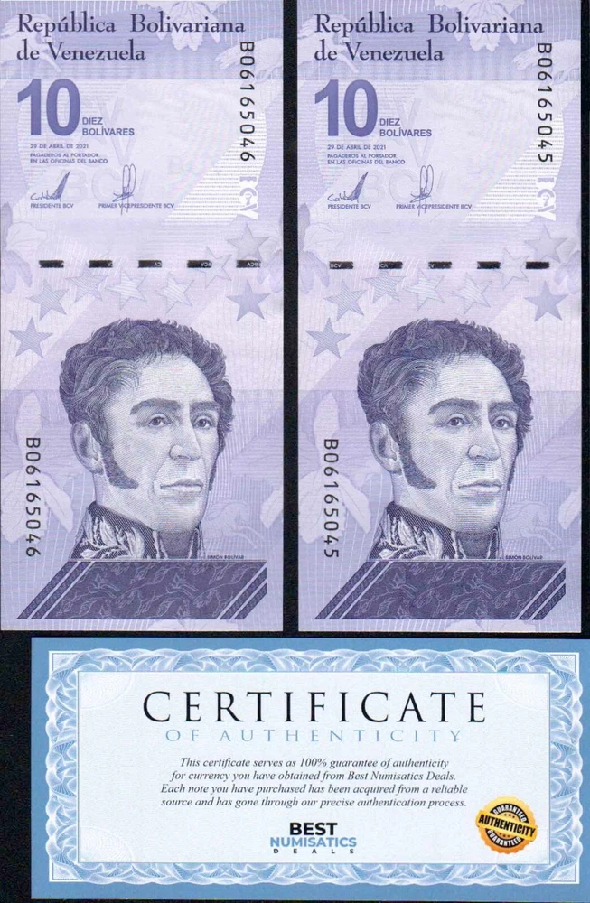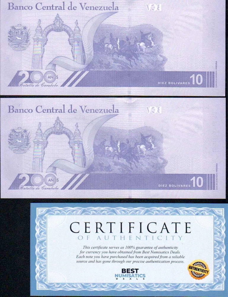 Important Information Before Purchasing: 1. You will receive Two Uncirculated banknotes from Venezuela, Ten (10) Bolivar digital. Please note that the banknotes in the picture are for reference only; the serial numbers of the notes you receive may differ. 2. We offer standard USPS shipping at a nominal price. Alternatively, if you prefer expedited delivery, USPS Priority mail service is available, with the buyer bearing the shipping costs. 3. To streamline your shopping experience, shipping can be combined during checkout or within the same cart. Please ensure all items are added to your cart before completing payment to combine your order. 4. Delivery times are subject to the carrier's schedule, and we do not have control over shipping times. 5. Orders are shipped every business day, excluding weekends and holidays. Orders placed on weekends or holidays will be shipped on the next business day. 6. We do not ship to PO Boxes or third-party mail holders such as UPS or FedEx Stores. Orders using forwarding companies will be canceled. 7. Once an order is placed, the shipping address cannot be changed. Only complete or correct addresses will result in order cancellation, requiring the buyer to repurchase with the correct address. 8. Shipping charges are non-refundable if the buyer places multiple orders with separate shipping costs. 9. International shipping is available, except to countries prohibited by law. 10. We offer a 100% guaranteed return policy within 30 days of the item's arrival. Returns must include all items in their original condition; partial returns will not be accepted. 11. Returns are eligible for a refund only; we do not offer replacements or exchanges. 12. If you encounter any issues with your order, please contact us via the eBay messaging system before leaving feedback. We are committed to promptly resolving any concerns. 13. All prices are final, and we do not entertain offers. Emails with offers will not receive a response. 14. We have provided positive feedback upon receiving payment and would appreciate it if you could do the same upon receiving your item.