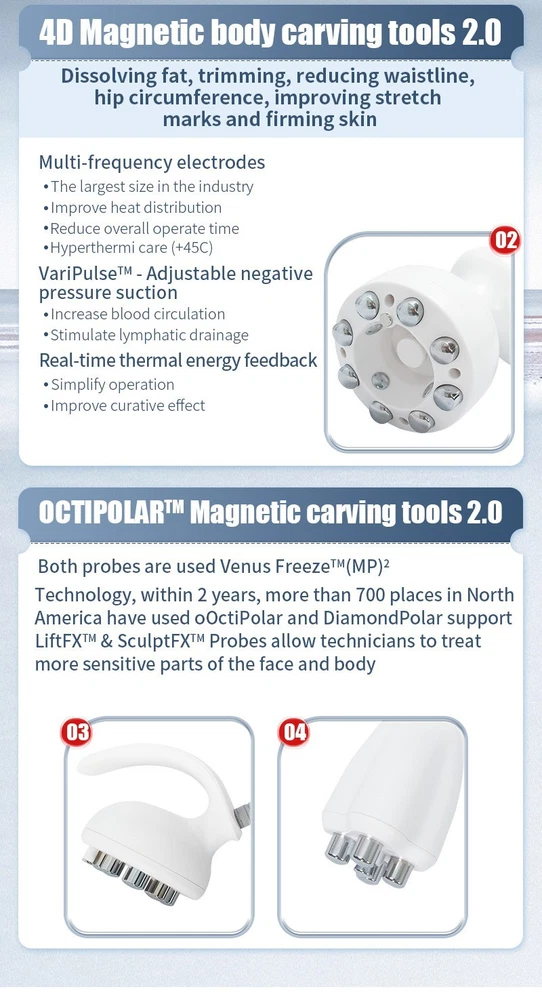 Venus legacy cellulite reduce Rf aesthetic machine 4D fat removal bodi form Cavitation Vacuum slim machine fat burner machine TECHNOLOGY Four applicators: OctiPolar and 4D Body for larger areas, and DiamondPolar and 4D Face for smaller areas. All four applicators are powered by proprietary (MP)2 technology with the synergistic combination of Multi-Polar Radio Frequency (RF) and Pulsed Electro Magnetic Fields (PEMF). The OctiPolar and DiamondPolar applicators are most suited for skin tightening and wrinkle reduction. The 4D Body and 4D Face applicators are equipped with novel VariPulse technology, which makes them most effective for body contouring and cellulite reduction. Advantages: 1. once again energizing the industry with a revolutionary technology for non-surgical body slimming and skin tightening for the face, neck and body. 2. The Multi-Polar Radio Frequency delivers Fast, Pain Free, Homogeneous Heating to multiple tissue depths resulting in superior clinical outcomes. 3. Pulsed Magnetic Fields technology has been used in traditional medicine for decades and is scientifically proven with regard to its regenerative properties. 4. Pulse allows adjustable pulsed suction for deep energy penetration, lymphatic drainage, as well as stimulating circulation. 5. Real-Time Thermal Feedback integrates a hands-free thermometer with an on-screen visual feedback graph to allow for constant tissue contact for overall better clinical results.6. It is the first all-in-one workstation that combines the proven multi-polar + magnetic pulse technology with the new feature that will enhance your client satisfaction and deliver an impressive return on investment. 7. Ease of Use and Operator Comfort. 8. multi-applicator workstation is ergonomically designed with the clinic owner and technician in mind. 9. Recommended treatments are pre-programmed into the system and can be easily adjusted at any time during the procedure. Detailed Photos Product Parameters Product name Cellulite Treatment 4D Monopolar Multipolar Machine Function body contouring, fat burning, weight loss, ems muscle stimulator, fat freezing, wrinkle removal Handles 4 handles Output power 3000W Technology RF+Vacumm Packing size 120*60*65cm Voltage AC110V-220V/50-60HZ Service ODM/OEM available Certificate CE Keywords venus legacy machine radiofrequency, venus legacy slimming machine, therapy, ems body sculpting machine, body sculpting machine, Rf Skin Tightening, ems body sculpting machine neo, fat freeze machine, ems Neo With Rf, slimming ems, body fat freezing machine, Ems Muscle Sculpting, body contouring machine Using Effect Packaging & Shipping Packaging details Each parcel is packed in layers to ensure that it is delivered to you in perfect conditions. Shipping details 1. For this RTS(ready to ship) product, you can place the order directly and we will ship it out as fast as we can. If in stock, the product is shipped within 72 hours. If the stock is sold out, it will be shipped as soon as possible. We have 300 stocks per month. 2. Items will be shipped via DHL, FedEx, UPS, EMS or Post Air Mail. 3. All our items will be shipped to the buyer's address which offered by buyers, confirm the delivery address please for payment. 4. Online tracking available. Tracking number and webiste will be offered once items shipped