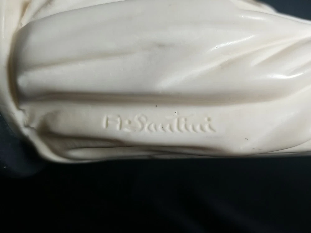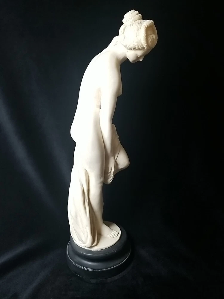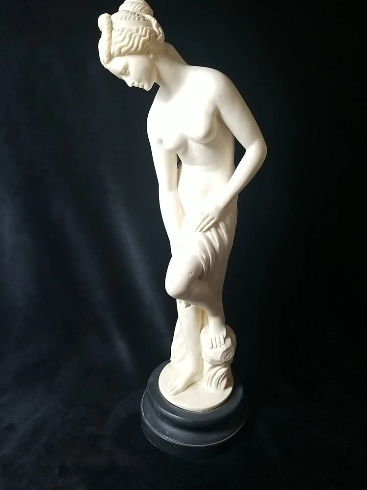 The little toe on the left foot is incomplete. Not noticeable unless closely inspected. No other chips cracks or repairs.