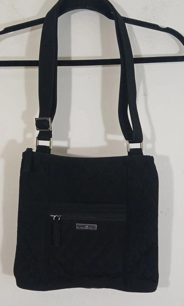 This stylish and functional crossbody handbag is a must-have for any fashion-conscious woman. Featuring a diamond quilted pattern and black exterior color, this bag is perfect for any occasion, from travel to workwear, and everything in between. The bag has a square shape and a medium size, with a width of 11 inches and a height of 11 inches. The bag is made of cotton and features a crossbody strap that can be adjusted to your liking. It has a zip closure and silver hardware color, with inner and outer pockets for plenty of storage space. The bag is lightweight and has a lined interior with a multicolor lining material. This Vera Bradley Crossbody Handbag Purse Hipster Top Zip Black Quilted Bag is a perfect addition to any collection. The photographs show the most important measurements to make it easier for you to make the purchasing decision based on the fit to your size. The piece is in very good condition, almost like new, without stains or breaks or obvious signs of use. If you have any questions you would like to ask us about this item, please do not hesitate to contact us and we will be happy to help you as soon as possible. In any case, you can buy with peace of mind in our store because we accept returns on all our items, so your money is safe. We process orders quickly, generally the items are sent the same day or the next day at the latest and as soon as they are sent you are informed of the tracking number so that you have full control of your purchase. As you can see, we strive to make your purchasing process as pleasant and simple as possible. Don't hesitate and add this beautiful pearl to your collection!