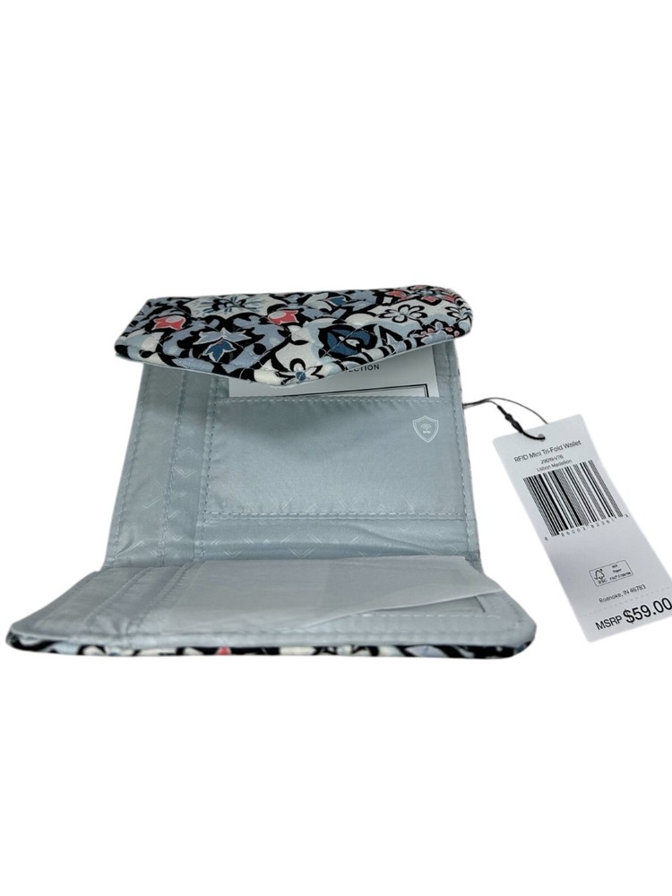 NWT Vera Bradley Mini Tri-Fold Wallet in Lisbon Medallion Floral Floral printed Quilted soft cotton fabric Tri-fold closure Button snap closure Multiple card slots and ID slot Money slot RFID blocking 1 zip pouch on back Lightweight Nylon lining Made with cotton/nylon Made in Cambodia OSFM #verabradley #verabradleywallet #floralprint #quilted #verabradleyminiwallet #trifold #trifoldwallet #quiltedwallet #lisbon #lisbonmedallionfloral