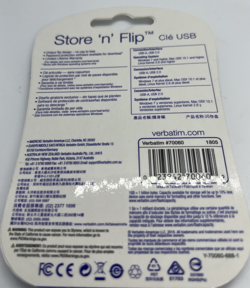 Verbatim 70060 Store 'N' Flip Usb Flash Drive 32Gb Violet Password Protection.