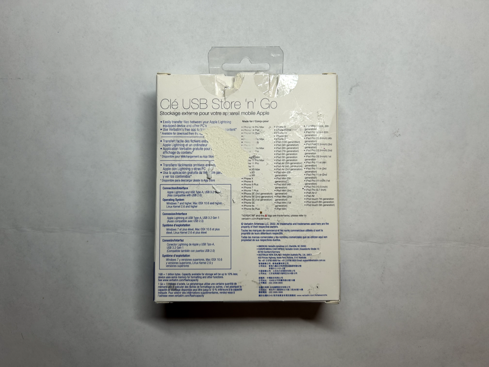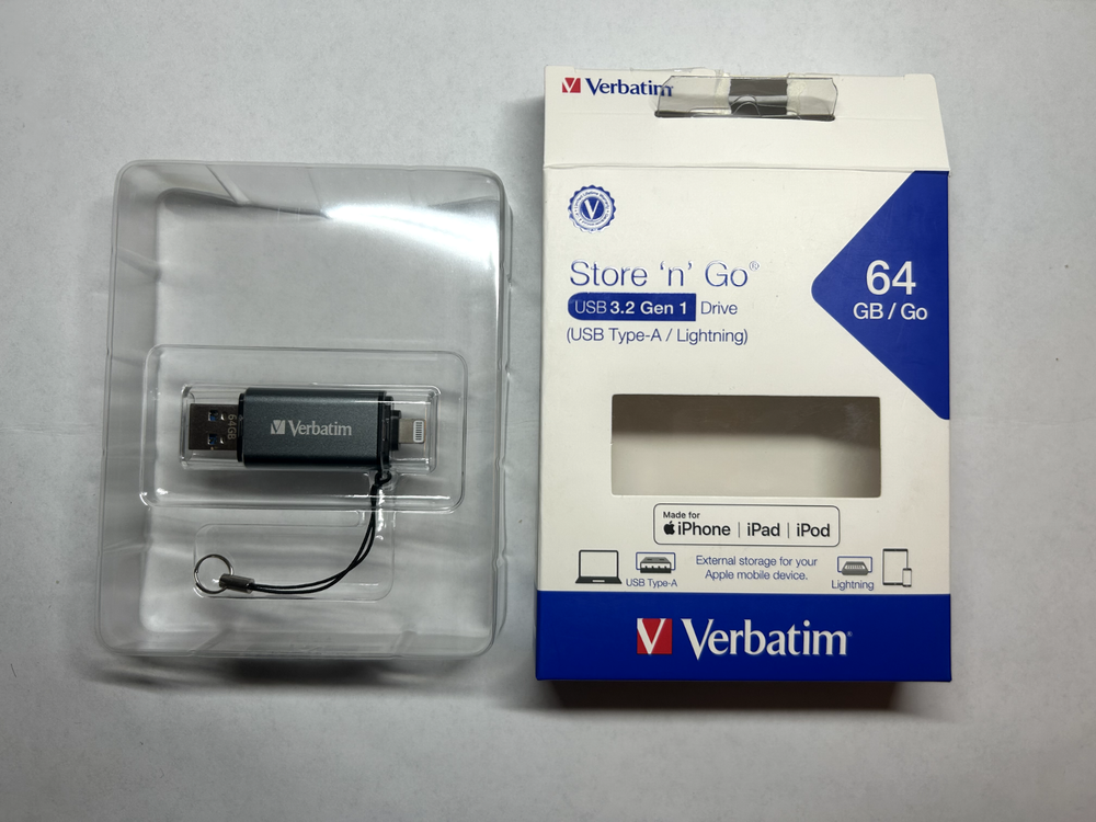 Experience the convenience of portable storage with the Verbatim Store 'n' Go 64GB USB 3.2 Gen 1 Flash Drive. Designed for versatility, this compact device is compatible with a wide range of devices including iPhones, laptops, PCs, iOS, and Macs, ensuring your data is accessible on the go. The sleek gray unit is crafted to fit seamlessly into any setting, whether you're at home, work, or on the move. The flash drive boasts a substantial 64 GB of storage capacity, allowing for the saving and transfer of large files with ease. With its USB Type-A and Lightning interface, it offers a reliable and fast connection to your preferred devices. The Verbatim brand is synonymous with quality and durability, making this flash drive a trustworthy choice for your data management needs.