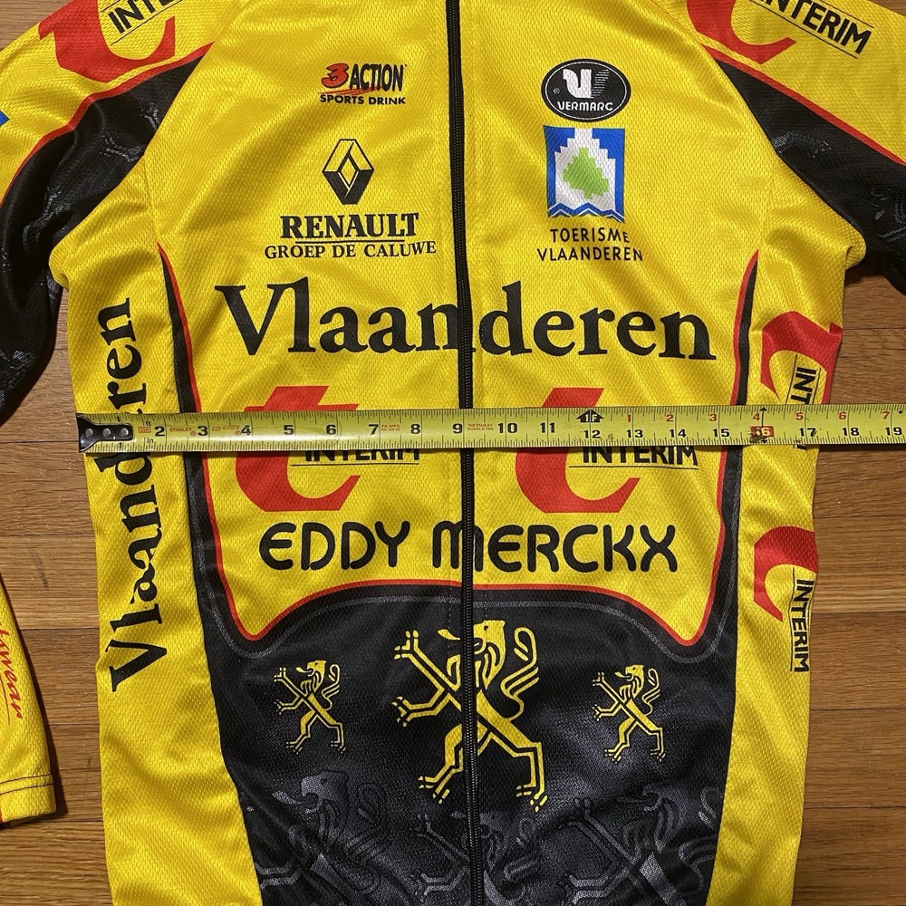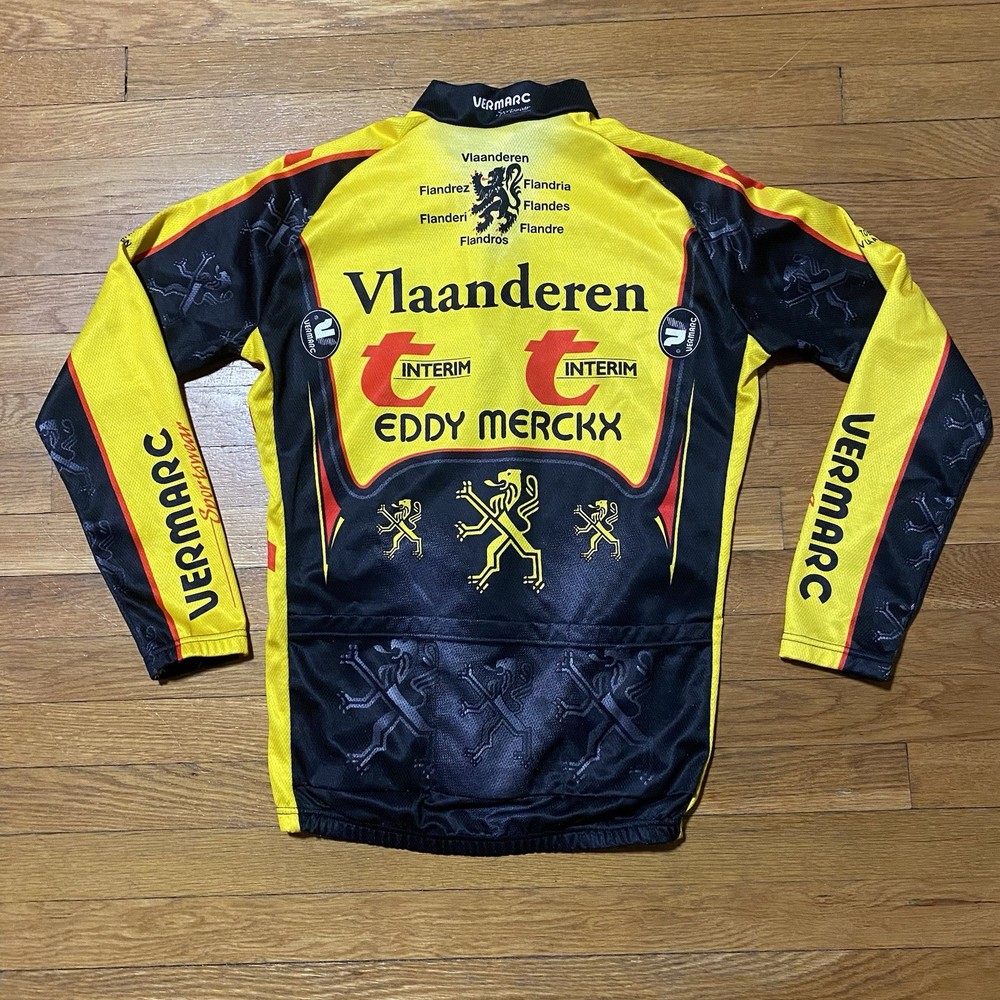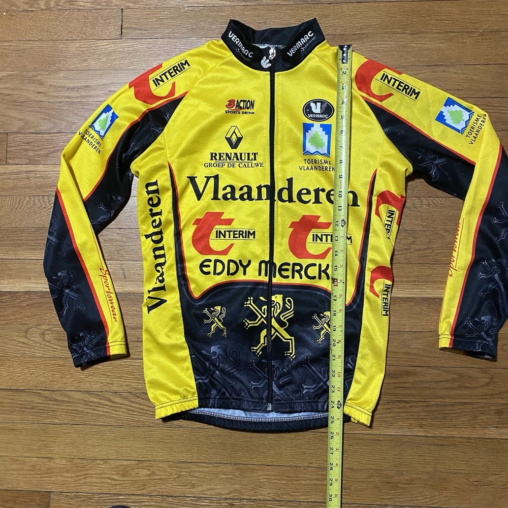 The Vermarc × Eddy Merckx Cycling Jerseys Long Sleeve in Yellow is a high-quality cycling top designed for men. Made from a blend of polyester and polyurethane, this jersey offers a comfortable and athletic fit. With a classic zip closure and a vibrant multicolor design, this jersey is perfect for all seasons and features a stylish theme inspired by biking. Whether you are cycling in winter, summer, fall, or spring, this jersey will keep you comfortable and looking great as you ride. Made in Italy by the reputable brand Vermarc, this jersey is a must-have for any serious cyclist.