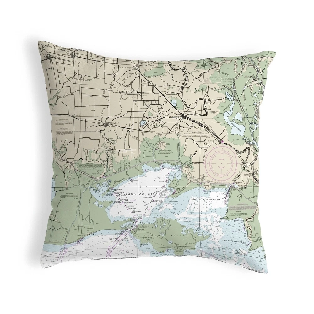 Betsy Drake Interiors now offers our colorful artwork on noncorded pillows. All noncorded pillows have art printed on both sides for easy reversal. Our pillows are water and fade resistant for years of enjoyment, and our designs feature artwork by artists R.B. Hamilton and Betsy Drake. All of our products are proudly made in the USA. Free Shipping Over $49.99* Details Vermilion Bay, LA Nautical Map Noncorded Pillow 12x12 Product Description: Betsy Drake Interiors now offers our colorful artwork on noncorded pillows. All noncorded pillows have art printed on both sides for easy reversal. Our pillows are water and fade resistant for years of enjoyment, and our designs feature artwork by artists R.B. Hamilton and Betsy Drake. All of our products are proudly made in the USA.