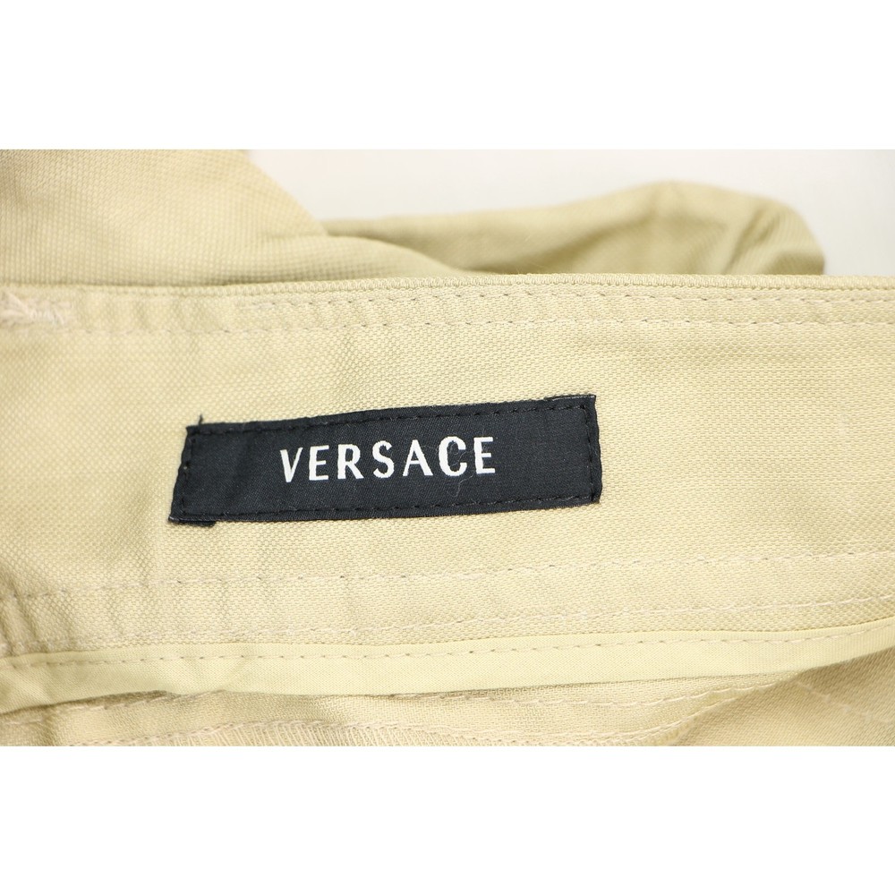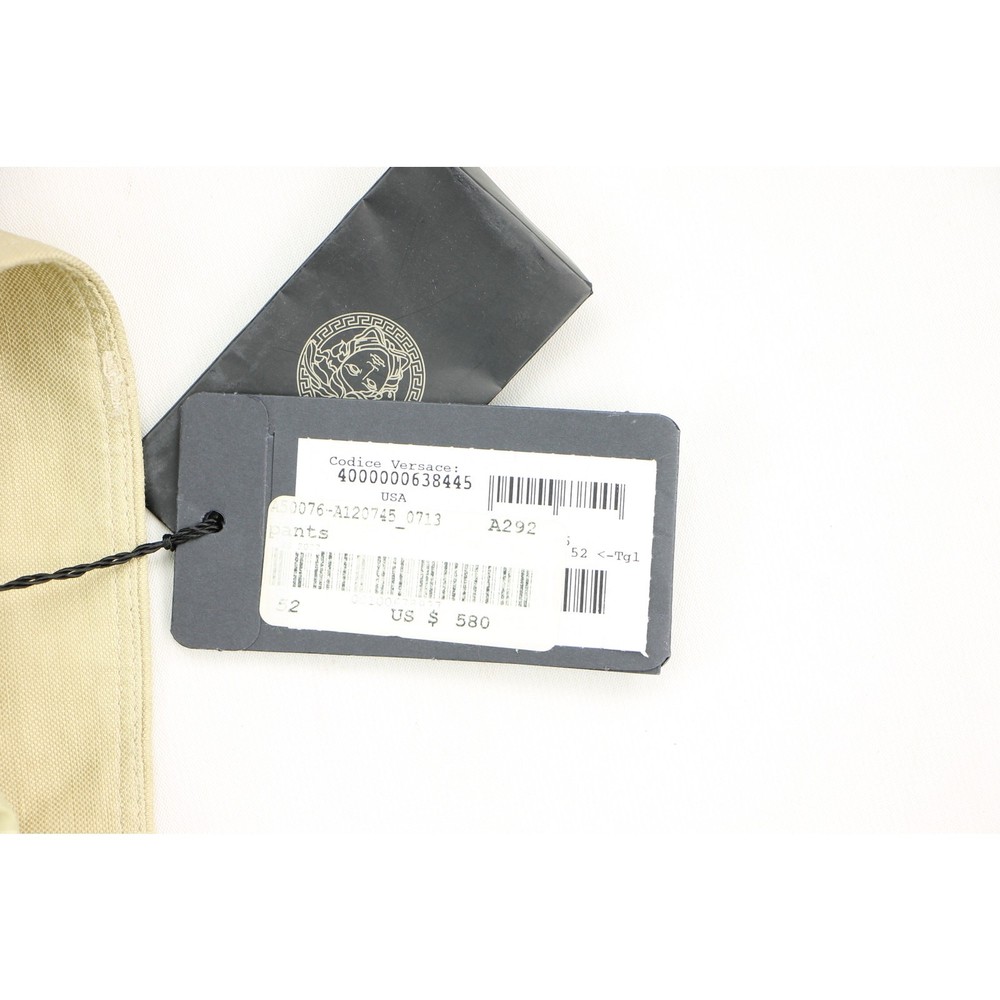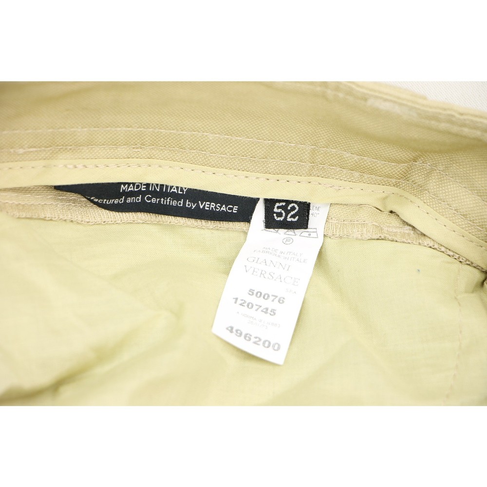 Elevate your wardrobe with these authentic Versace khaki linen pants, a perfect blend of luxury and casual style. The straight-leg cut offers a classic silhouette, while the lightweight linen fabric ensures comfort and breathability. Ideal for versatile styling. Capture these moods: Minimalist design meets luxury, Versace quality, perfect for preppy summer styles, breathes sophistication into streetwear, contemporary tailoring for a modern wardrobe, ideal for creating normcore statements, understated elegance in casual fashion material: 61% linen 39% rayon zipper fly made in Italy color: light khaki new with tags new condition size on tag:52 fits like a: waist 37 waist:18.5 hips:21.5 rise:11 inseam:35 all measurements are straight across and in inche 15212
