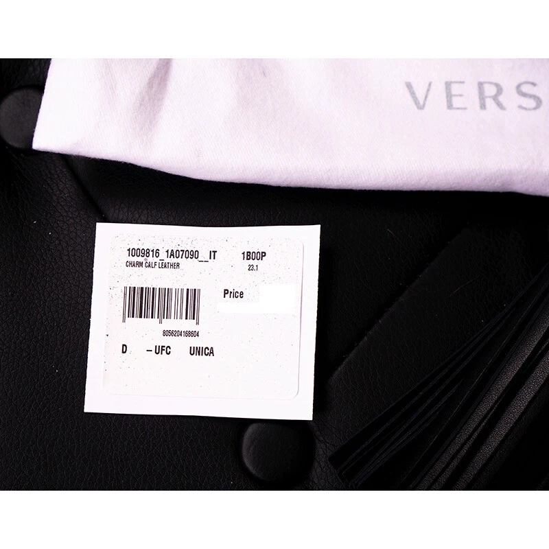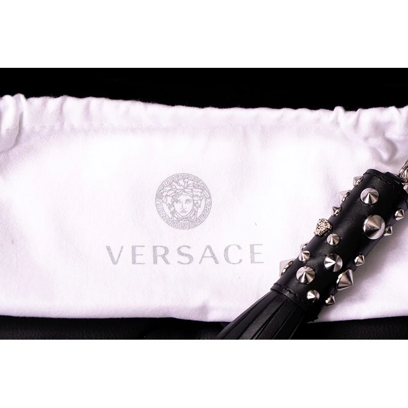 HTML 5 Template NEW $575 VERSACE Runway Black Leather Silver Tone Medusa Studded Tassel Keychain Size(s) About 9" Description New with tag, dustbag and box. Purchased from Versace. Retail $575. Photos are of the actual item. Authentic Versace tassel keychain in a bold punk-inspired style. Black-hued in smooth leather. Tassel detail. Silver tone spike studs. Medusa head logos. Silver-tone hardware. Style 1009816. Made in Italy. Adds a rock chic look to any bag or outfit. * All items are clean and from a non-smoking home. * ** Payment is expected within 5 days. Please read measurement carefully as sizes vary with designers, please ask for additional measurements if you are unsure. No refunds but exchange is permitted. Items are described as accurately as possible. In cases where refunds are sent the original shipping will not be refunded. All items are AUTHENTIC. Please ask all questions before purchasing. Thank you! **