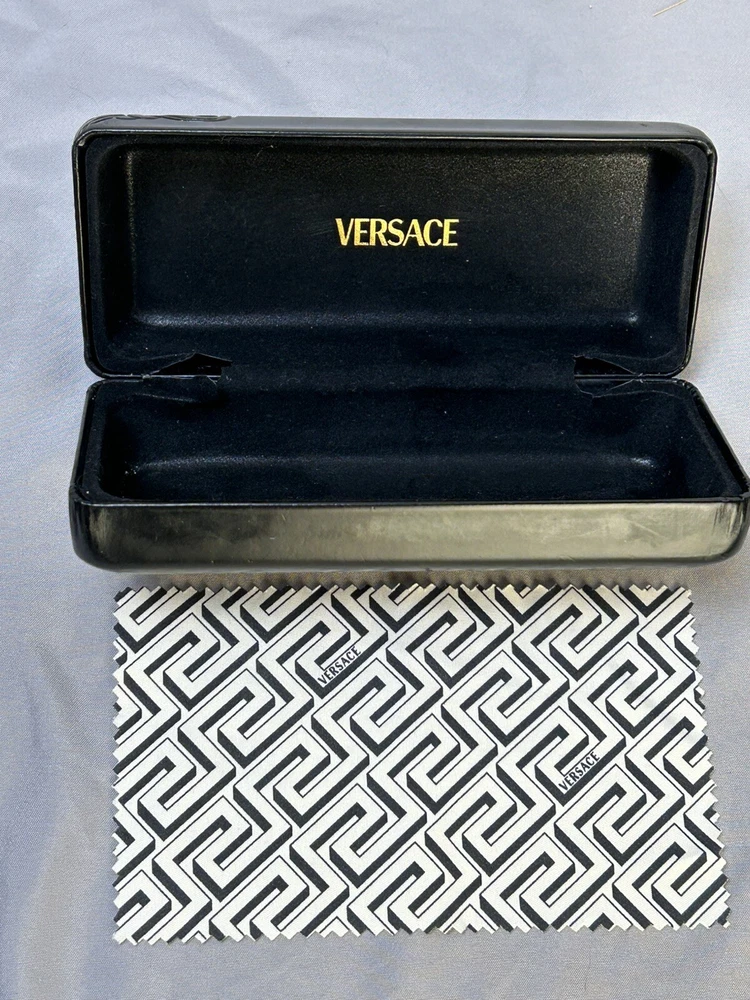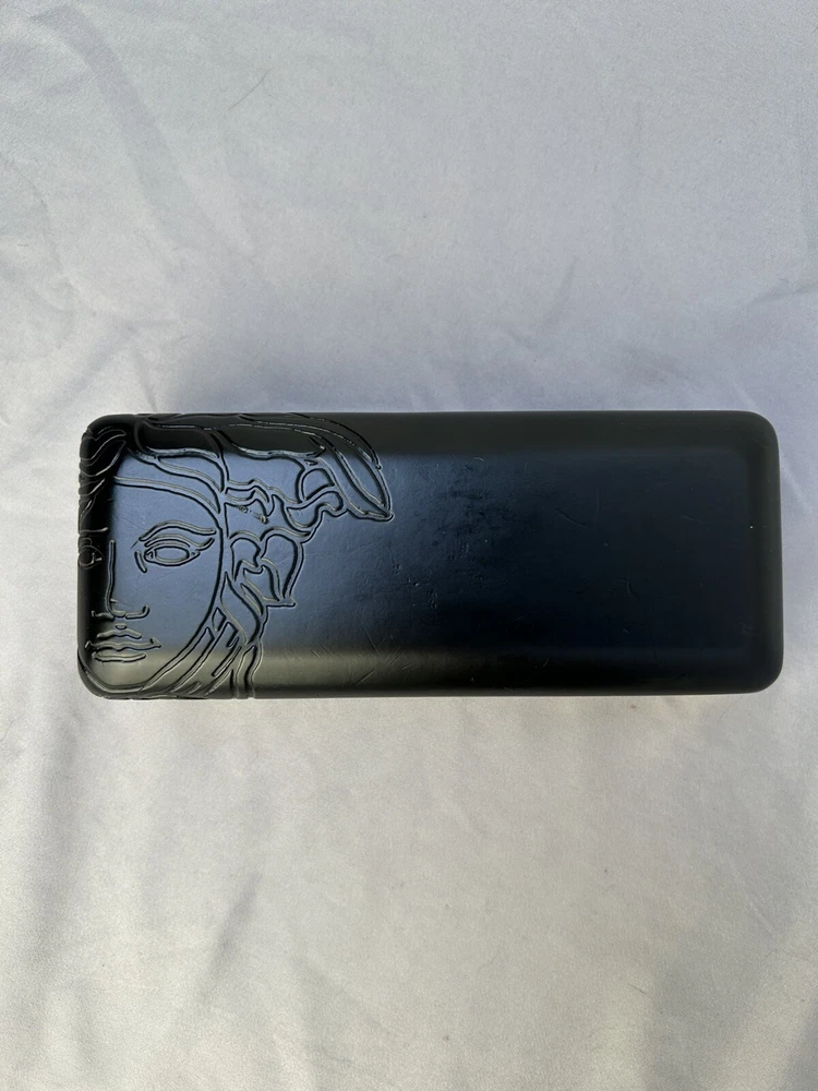 Versace VE 4041B Sunglasses Color: Black w/ Caramel Designer Case and Lens Wipe Included. Pre-owned w/ some ware. One rhinestone missing on one side. Case has some scuffs. Lenses and frame aside from rhinestone is in good condition, no scratches on lenses. Please let me know if you’d like any additional pictures.