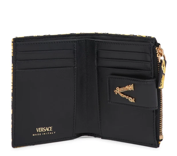 This wallet is pure luxury! The Versace Virtus Barocco design is stunning, and the silk twill with leather trim feels so premium. It's compact yet fits all my cards and cash perfectly. The craftsmanship is flawless—definitely worth the investment for a stylish everyday accessory. Love the bold gold detailing—it adds a touch of elegance to any outfit!