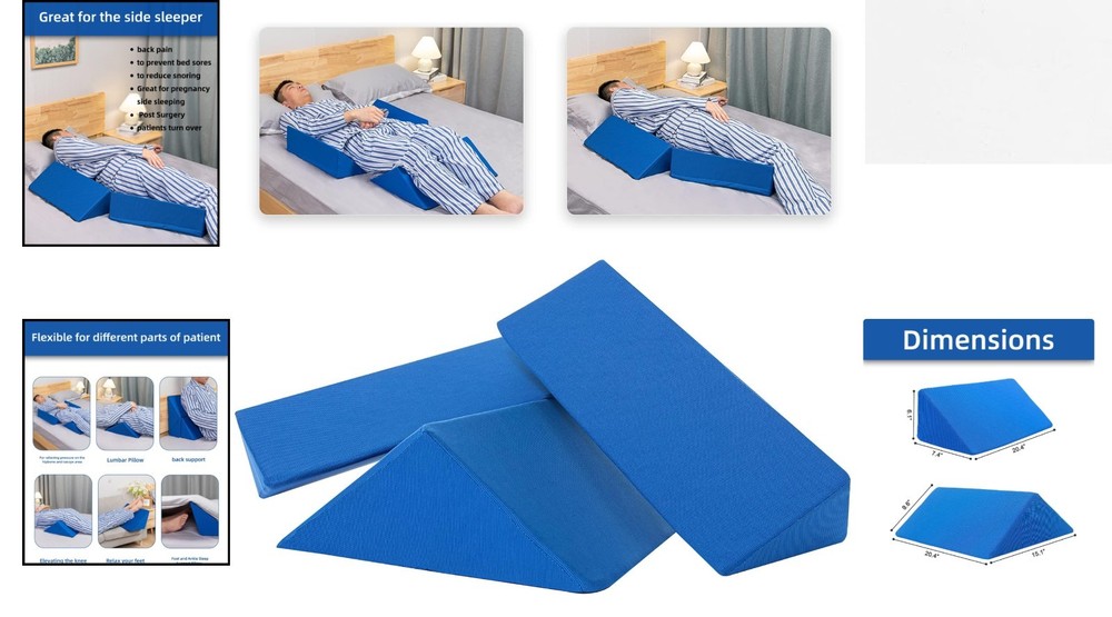 Versatile 3-Piece Wedge Pillow Set for Post-Surgery Recovery & Back Support ‹ › ‹ › ‹ › ‹ › ‹ › ‹ › ‹ › ‹ › Versatile 3-Piece Wedge Pillow Set Perfectly designed for Post-Surgery Recovery & Back Support Features: Includes three wedge pillows with different angles & slopes for personalized support. Ideal for side sleepers, helps alleviate back pain and reduces snoring. Perfect size and density, even for taller individuals; elevates knees after surgery. Simple to place for wheelchair users for secure immobilization. Triangular design with angles of 40 degrees, 50 degrees, 90 degrees, and 100 degrees. Made from foam with a soft, high-quality cotton cover that is easy to wash. Packaging ensures safe transport, pillows expand to full size upon unboxing. Benefits: Offers flexibility in positioning to accommodate back support needs. Enhances comfort for those recovering from surgery or with medical needs. Helps prevent bed sores in bed-bound patients by optimizing positioning. Great for pregnant women seeking additional comfort and support. Durable design that maintains shape and support over time. Easy to clean and maintain, ensuring hygiene is effortless. Why Choose Our Wedge Pillow Set? If you require versatile, adjustable support to aid in recovery or enhance your comfort, our 3-Piece Wedge Pillow Set is your solution. With custom angles and exceptional quality, this set caters to side sleepers and those in need of medical care, preference for alleviating snoring, and enhanced positioning. Don't settle for discomfort during your recovery; invest in your well-being with our Wedge Pillow Set today and experience unmatched support! Shipping Free & Fast Shipping - We offer free shipping to most of the USA with a normal delivery time of 3-7 days. However, due to the current situation, additional delivery time (up to 3 weeks) may be required for some items. Alternative Carriers - We may use alternative carriers (e.g. USPS, FedEx, UPS, etc.) to ensure your package arrives safely and on time. Due to the use of multiple carriers, we are unable to provide a tracking number automatically. Handling Time - Orders are processed and shipped within 1-2 business days of receiving cleared payment. Shipping Restrictions - Shipping to Alaska, Hawaii, Puerto Rico, Guam, and other US territories may incur shipping charges or delivery restrictions. Please contact us before ordering, or your order can be refunded/cancelled. State Restrictions - There may be restrictions based on your state of purchase. For example, certain items may not be shipped to California due to state regulations. Contact for Tracking Updates - If you require tracking updates or have any concerns about the delivery of your order, please feel free to contact us, and we will be happy to assist you. Return 30-Day Hassle-Free Returns - We want you to be completely satisfied with your purchase. If you are not, you can return the item within 30 days of receiving it for a full refund or exchange. Easy Return Process - To start a return, simply contact us and we will provide you with a prepaid return shipping label and detailed instructions. Restocking Fee - There are no restocking fees for returns. However, the buyer is responsible for return shipping costs if the return is not due to a seller's error. Refund Processing Time - Refunds will be processed within 5 business days of receiving the returned item in its condition. Payment We accept all major credit cards, PayPal, and Apple Pay for your convenience. Your payment information is secure and encrypted to ensure a safe and seamless transaction. Please complete your payment within 3 days of purchase to avoid any delays in shipping. Feedback Your feedback is extremely important to us. We strive to provide the best products and customer service possible. If you are satisfied with your purchase, please take a moment to leave us a positive review. If you have any concerns or issues with your order, please contact us before leaving negative feedback. We are committed to resolving any problems and ensuring your satisfaction. Contact Us If you have any questions or concerns, please feel free to out to our customer support team. You can contact us through the eBay messaging system. We are available Monday to Friday, 9:00 am to 5:00 pm EST, and we will do our best to respond to your inquiry within 24 hours. Buy it now and enjoy a pleasant shopping experience! Item Length: Wedge Pillow for Sleeping Item Width: Wedge Pillow for Sleeping Unit Quantity: 1 count Material: Cotton,Memory Foam Features: Washable Care Instructions: Machine Wash Department: Adults Room: Bedroom Size: Large Type: Positioning Wedge Pillow Fill Material: Foam Color: Blue Shape: Wedge Pattern: Solid Style: Modern Closure Type: No Closure Thread Count: 200 or Less GSM (Grams per Square Meter): 150 to 300 Unit Type: lb